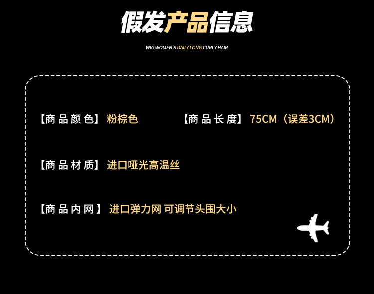 妆加假发女长发橘色一字蕾丝全头套假发网红时尚大波浪长卷发