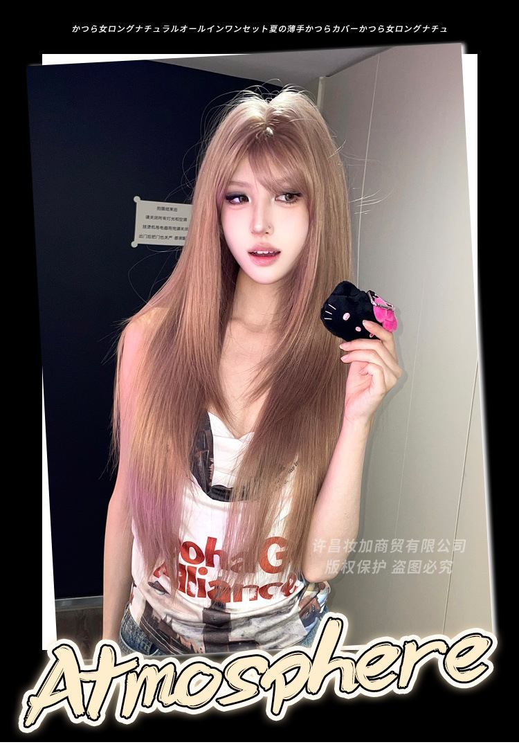 妆加假发高层次碎剪减龄亚裔风中分长直发全头假发