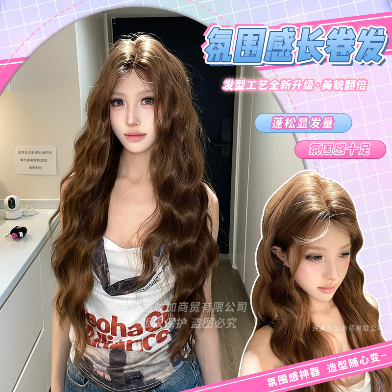 化粧とかつらの女性の日常ネット赤の長い巻き髪は自然に甘くてリアルな全頭カバー式のかつらです。