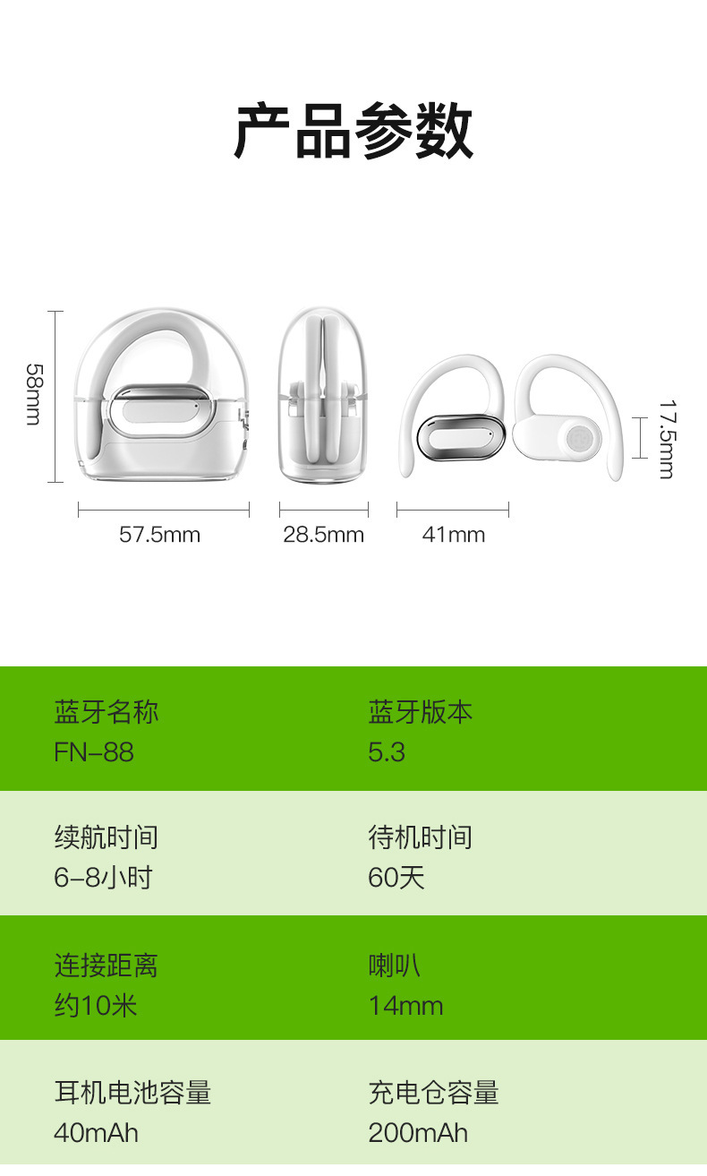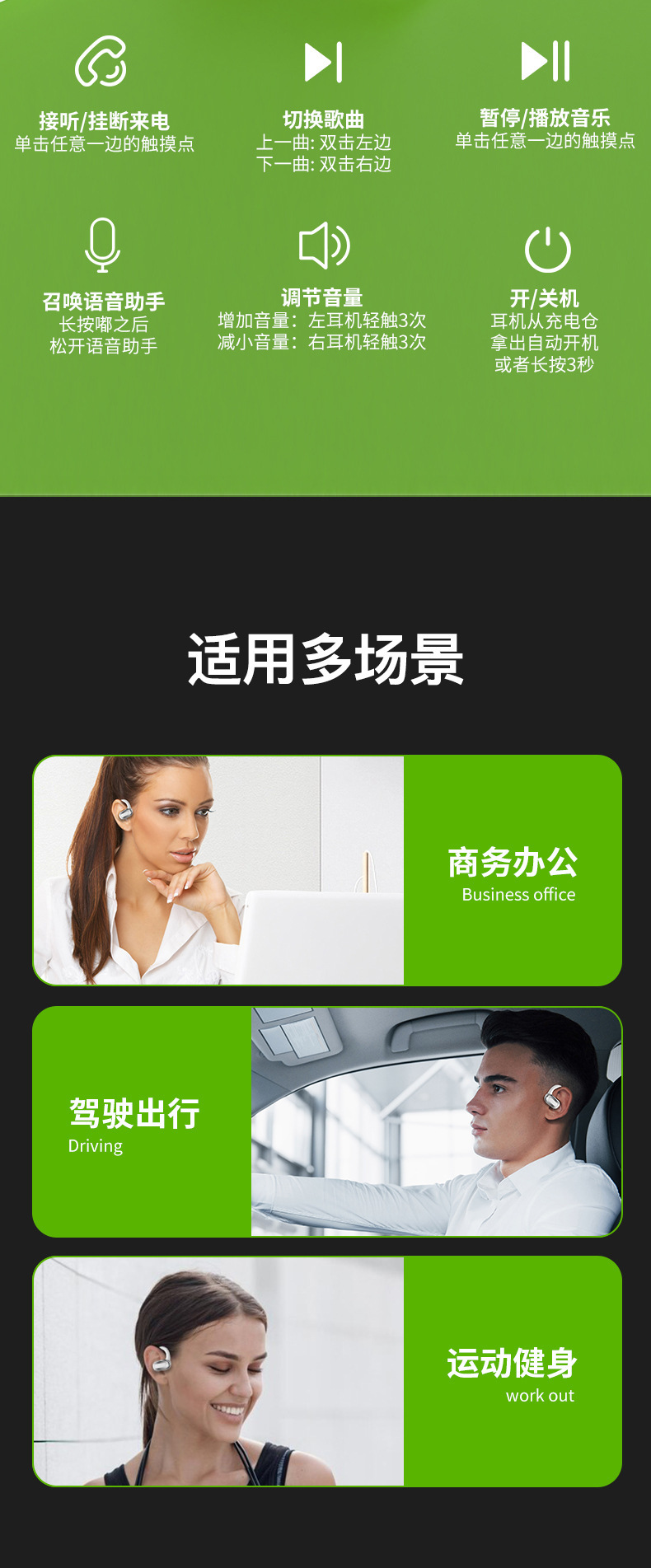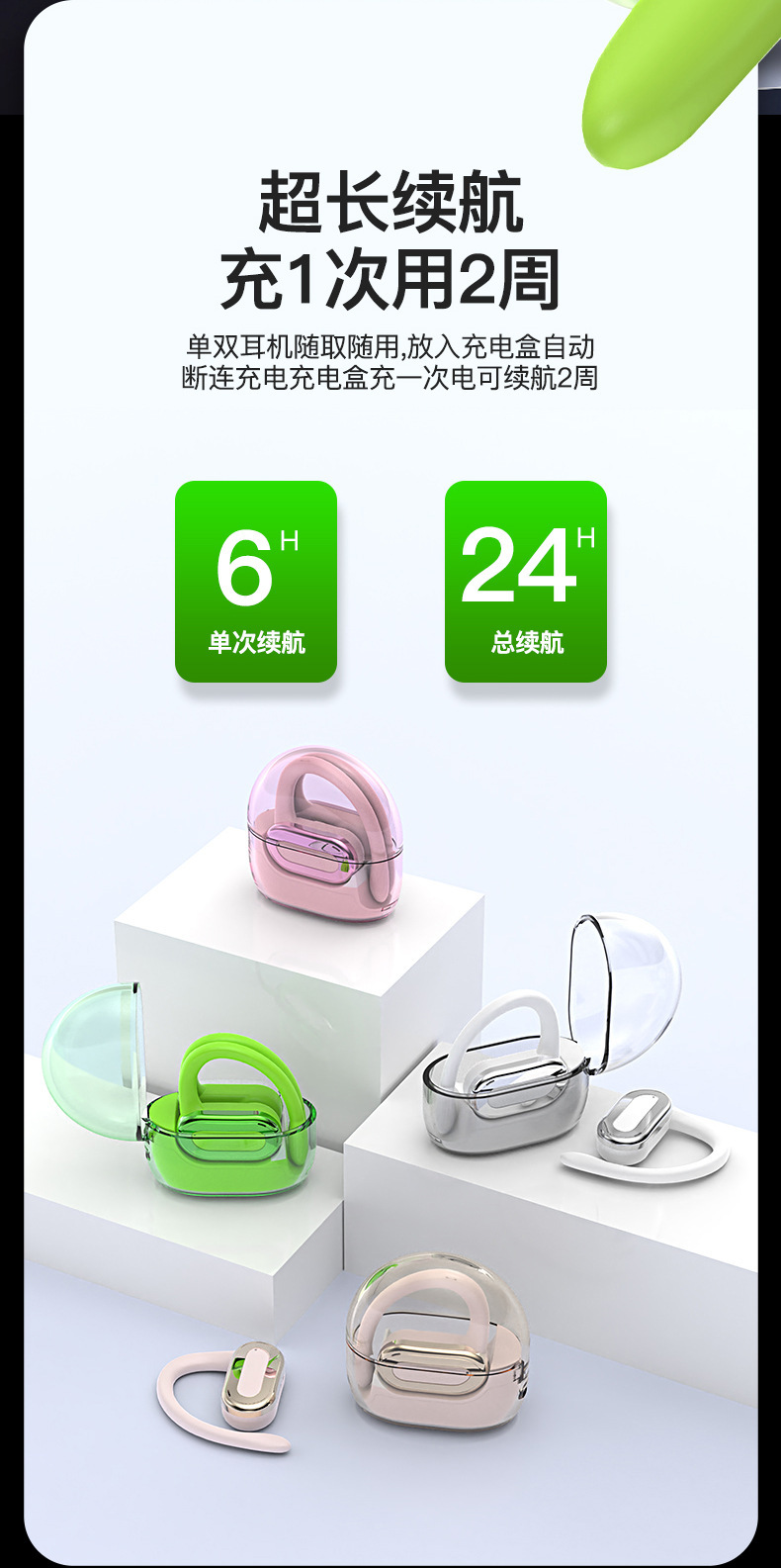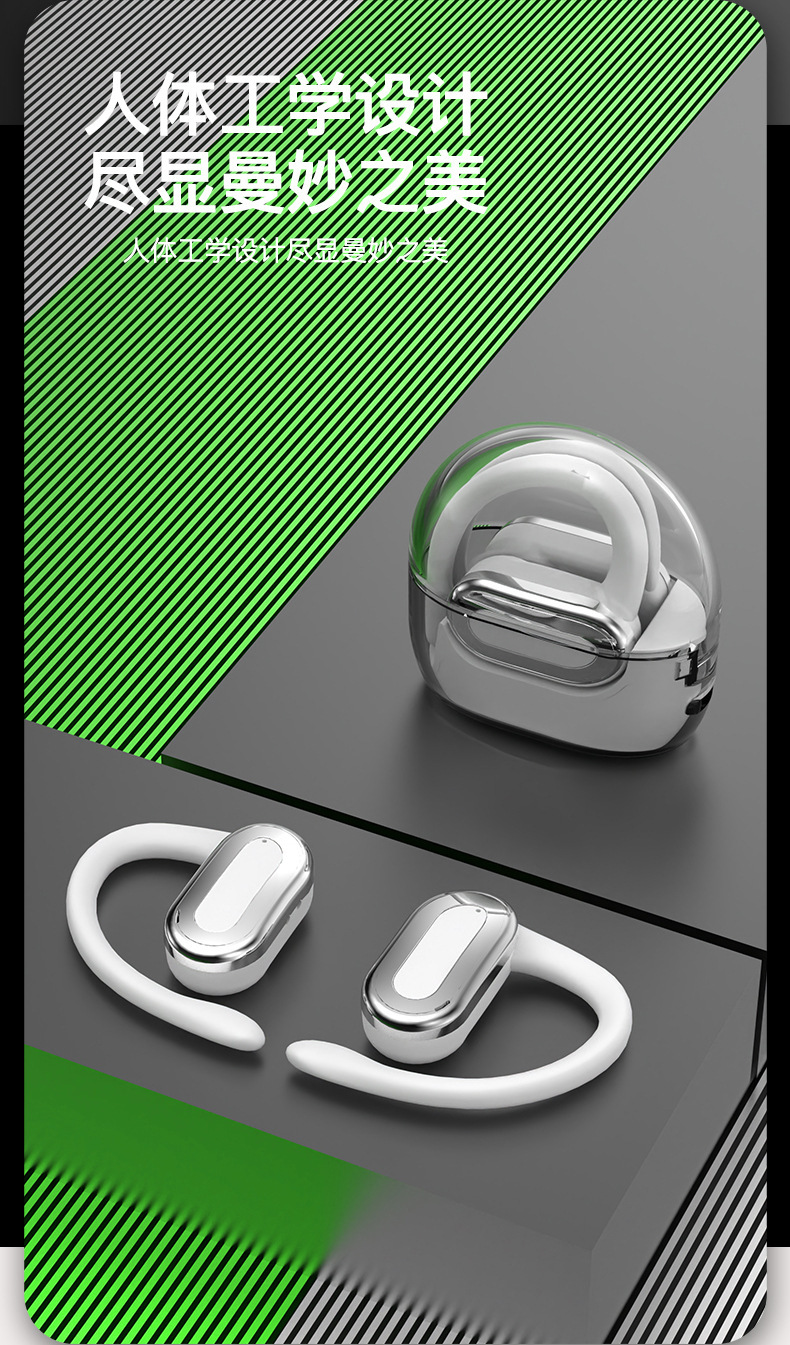 2025 新しい Bluetooth ヘッドセット 5.3 透明ヘッドセット OWS 超長バッテリー寿命ノイズリダクション長時間着用痛みのないスポーツ耳掛けタイプ