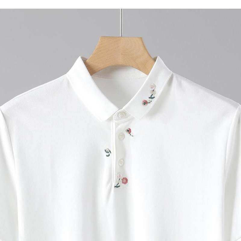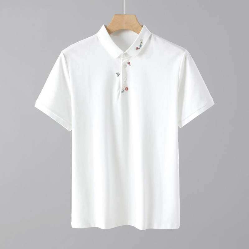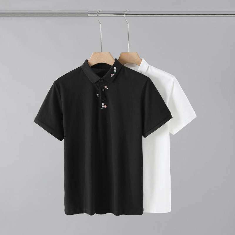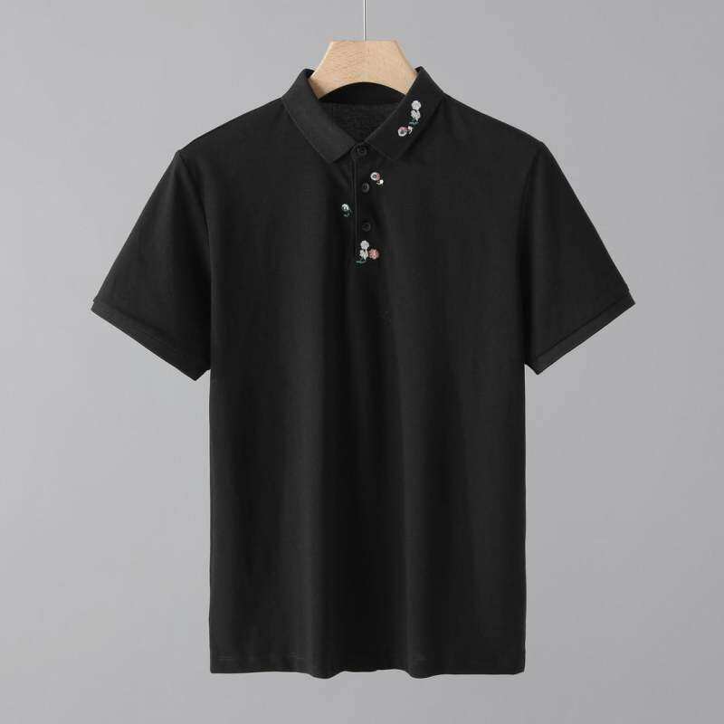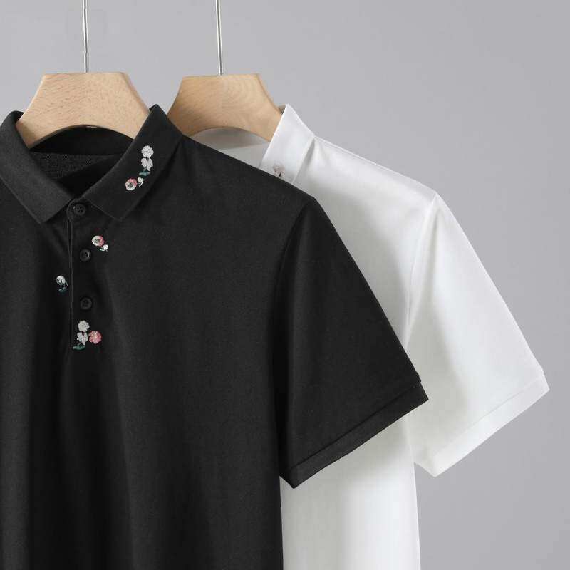 夏の新しいスタイルのネックライン花柄刺繍ポロシャツ、ファッショナブルでカジュアル、多用途で通気性のあるラペル半袖メンズスリムフィットトップ