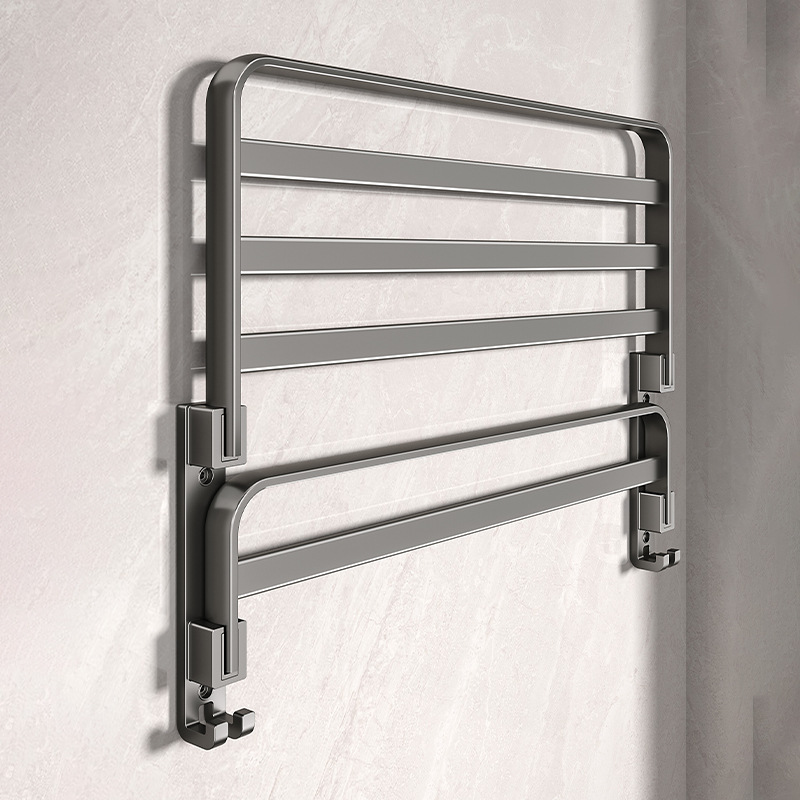 トイレタオル掛け 穴あけ不要 グレー収納ラック 壁掛け式 アルミ合金製 浴室 洗面所 トイレ収納ラック