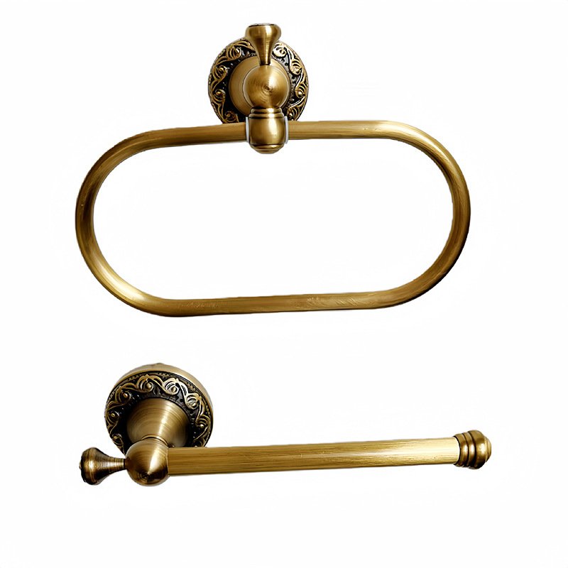 黄铜复古仿古董毛巾环雕花艺术浴室配件壁挂式半圆椭圆圆形毛巾环