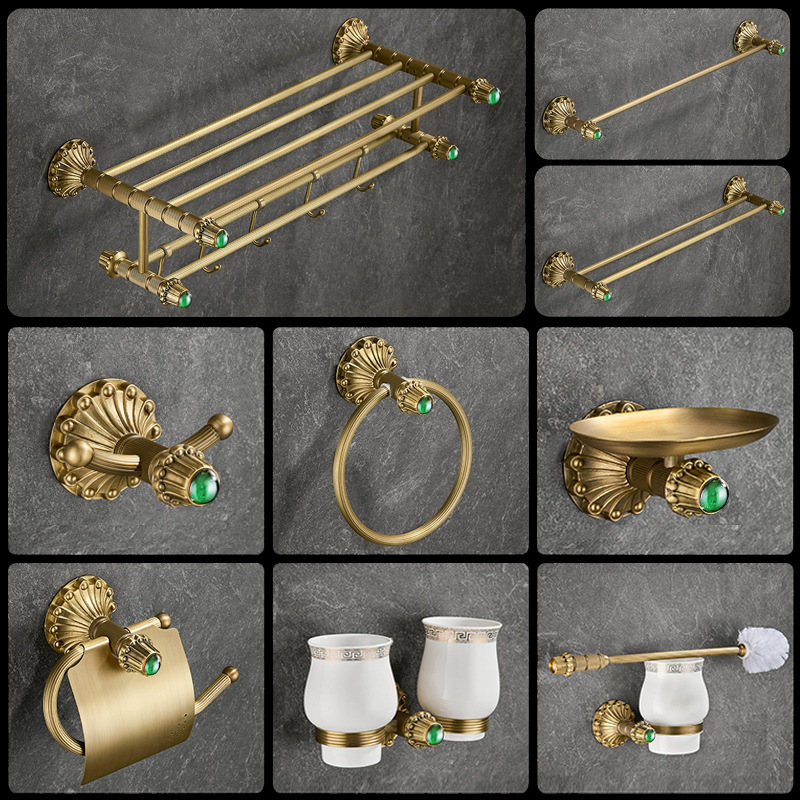 欧式复古黄铜毛巾架套装浴室五金挂件卫生间毛巾环杆架浴巾置物架