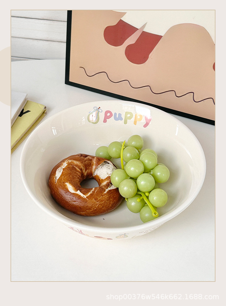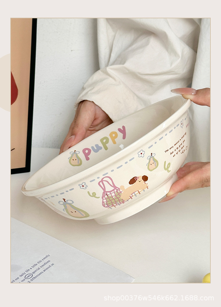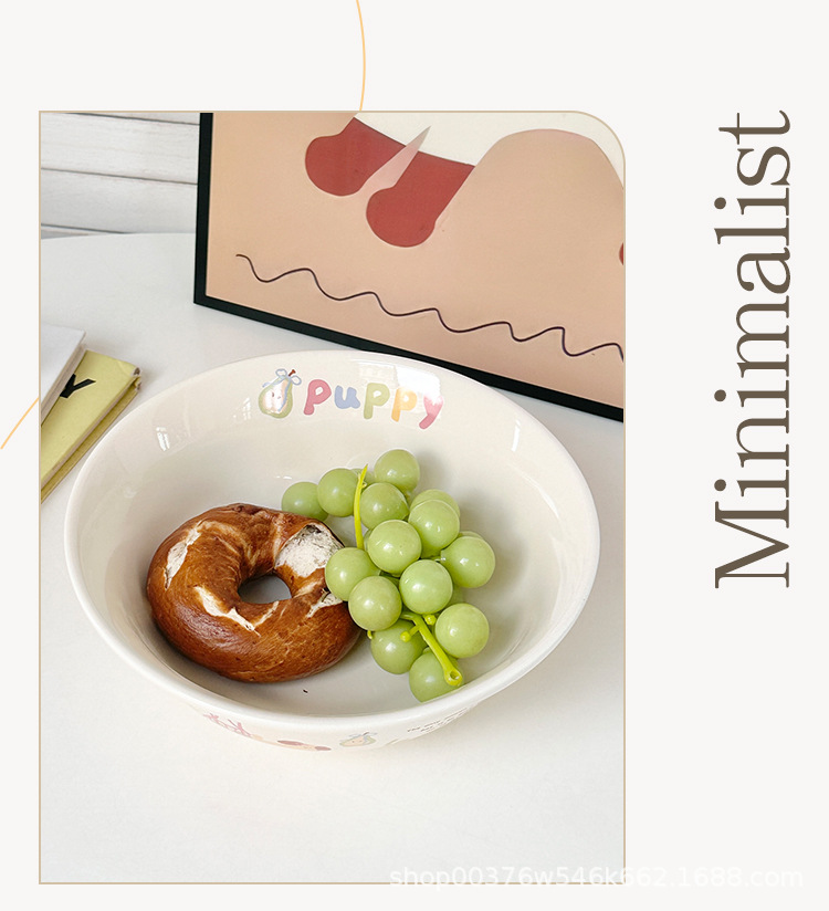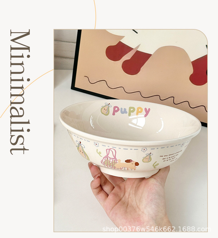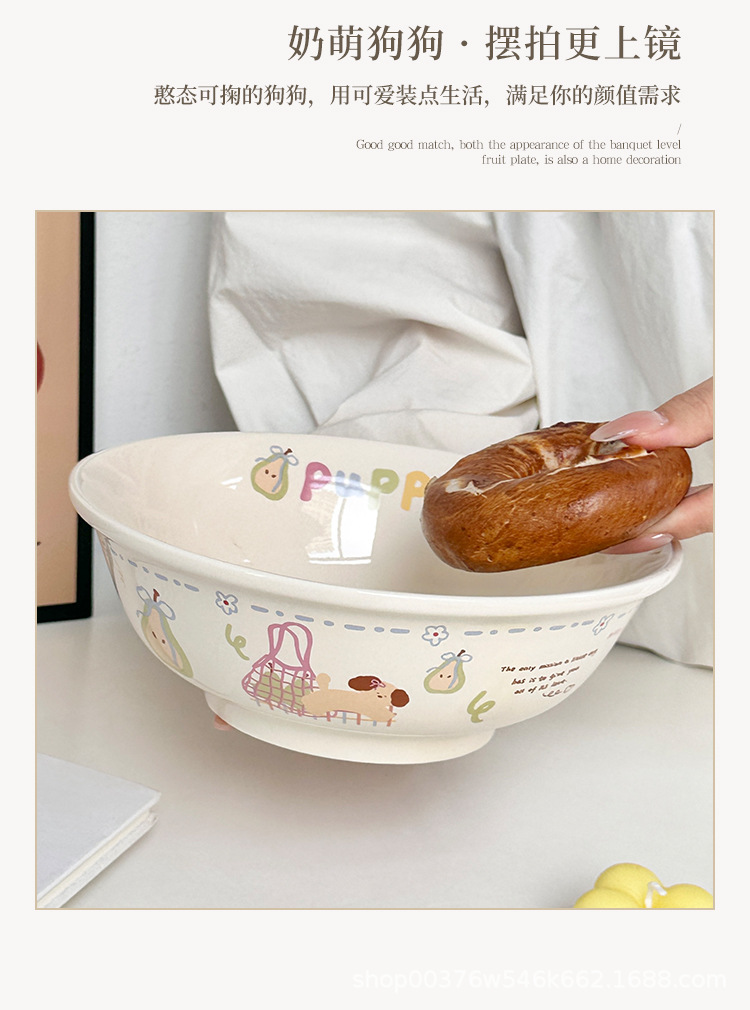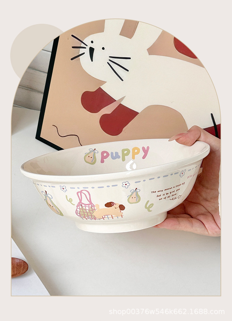 創意的な手はかわいい犬の深皿を握って、家庭用陶磁器のスープの皿のパスタのサラダの皿の軽食の皿の料理の皿の朝食の皿