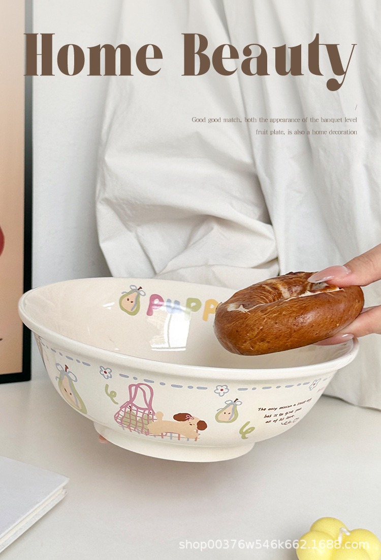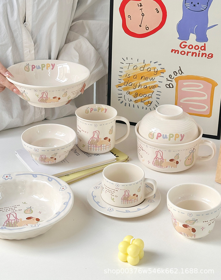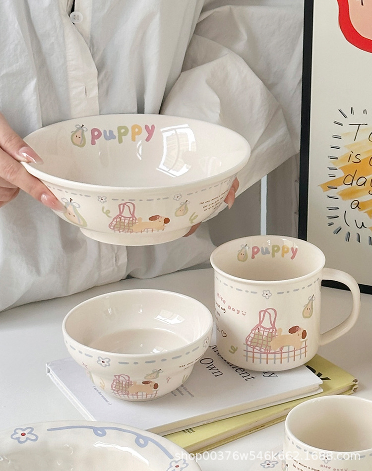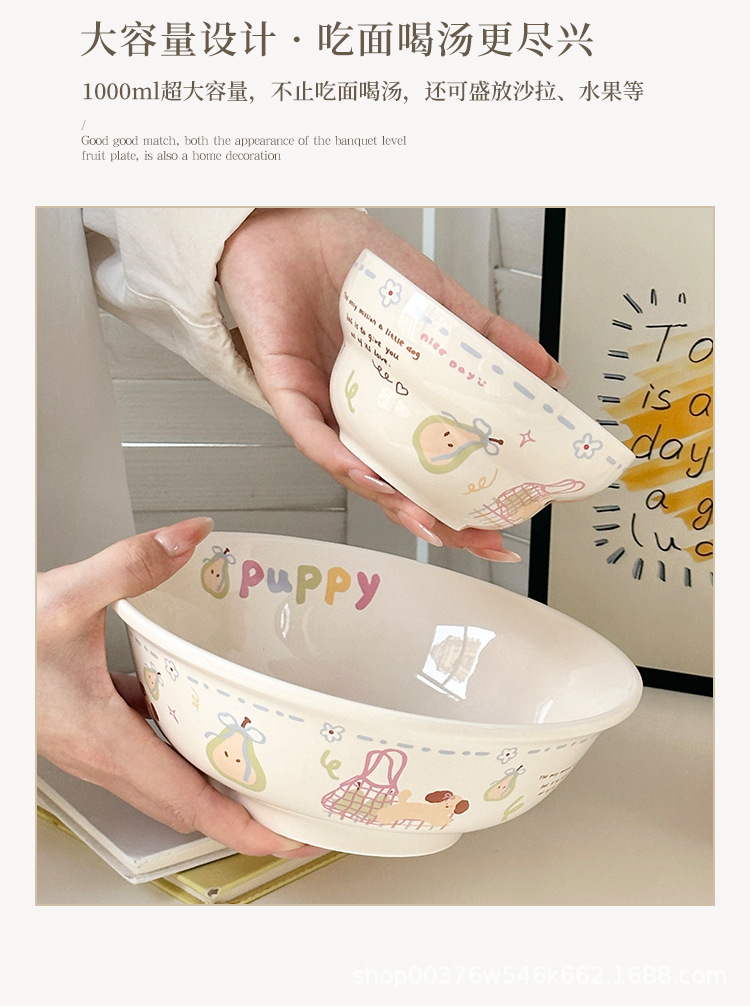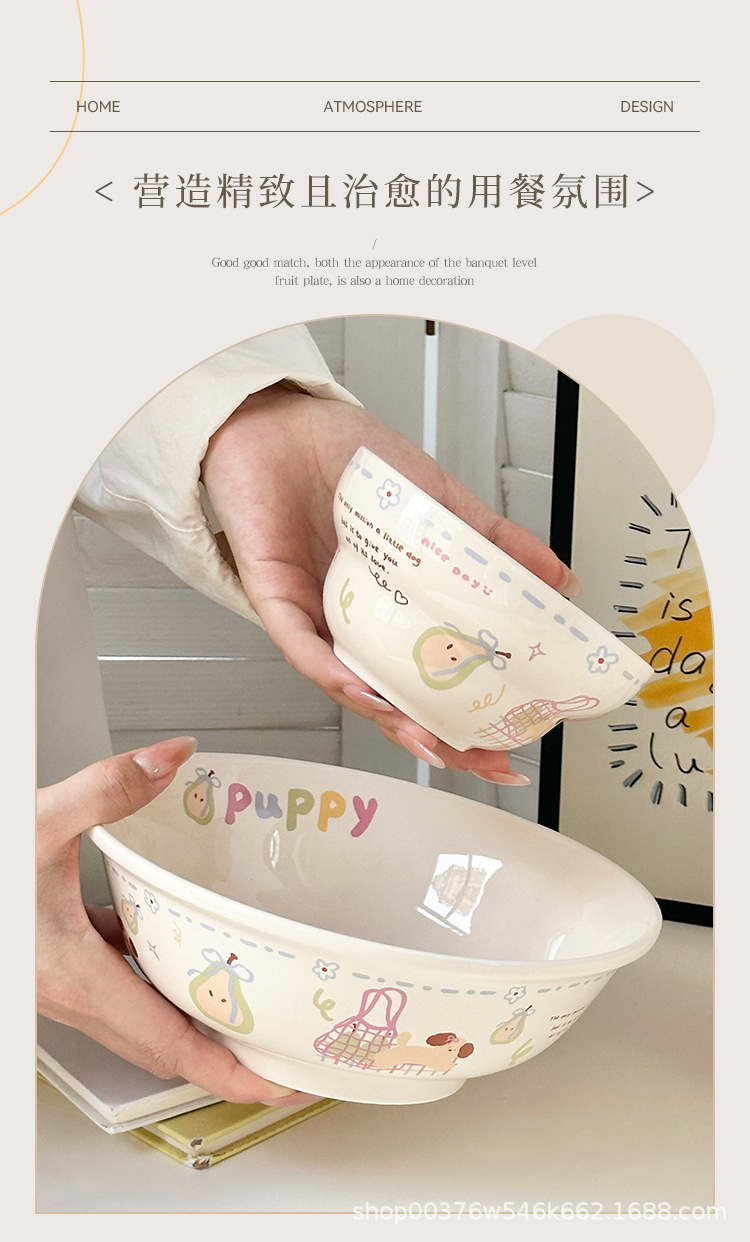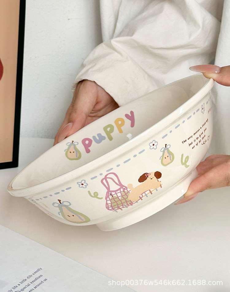 創意的な手はかわいい犬の深皿を握って、家庭用陶磁器のスープの皿のパスタのサラダの皿の軽食の皿の料理の皿の朝食の皿