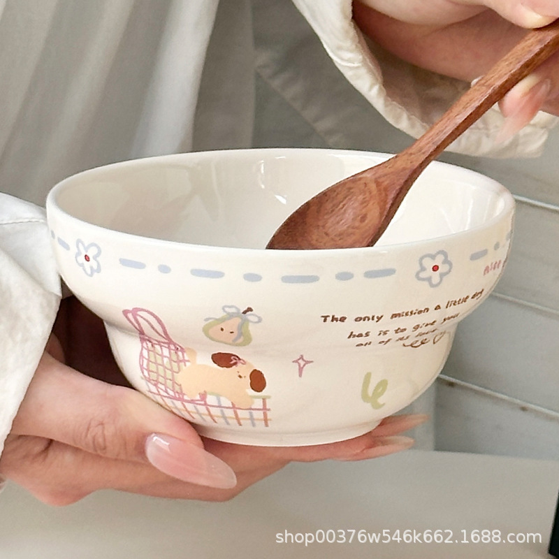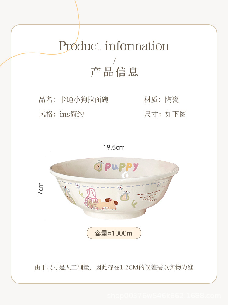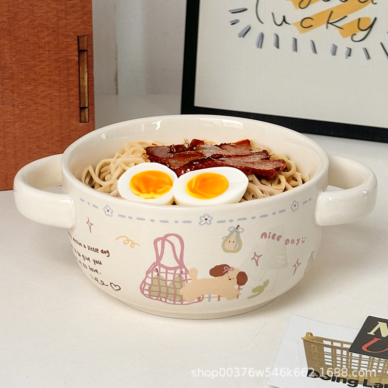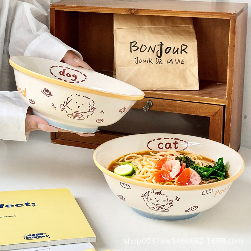 ラーメンボウル家庭用 8inch 背の高い大きなスープボウル漫画かわいいインセラミックヌードルボウル高価値インターネットセレブ食器