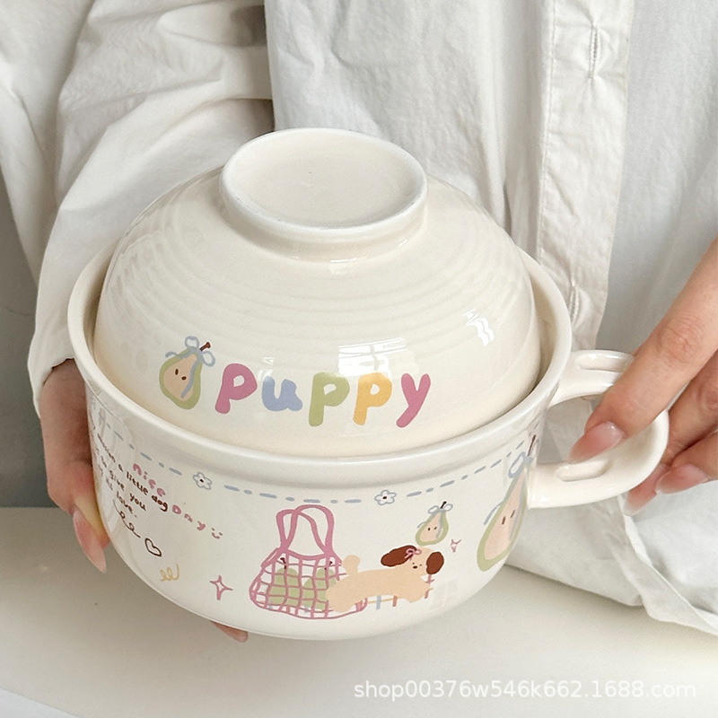 泡面碗学生宿舍家用日式可爱卡通ins陶瓷带盖汤碗面碗泡面杯饭碗