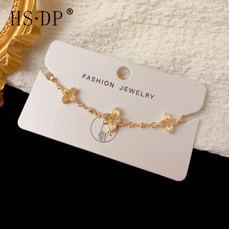 法式轻奢时尚高级感金属镂空四叶花手链个性简约百搭通勤手饰批发
