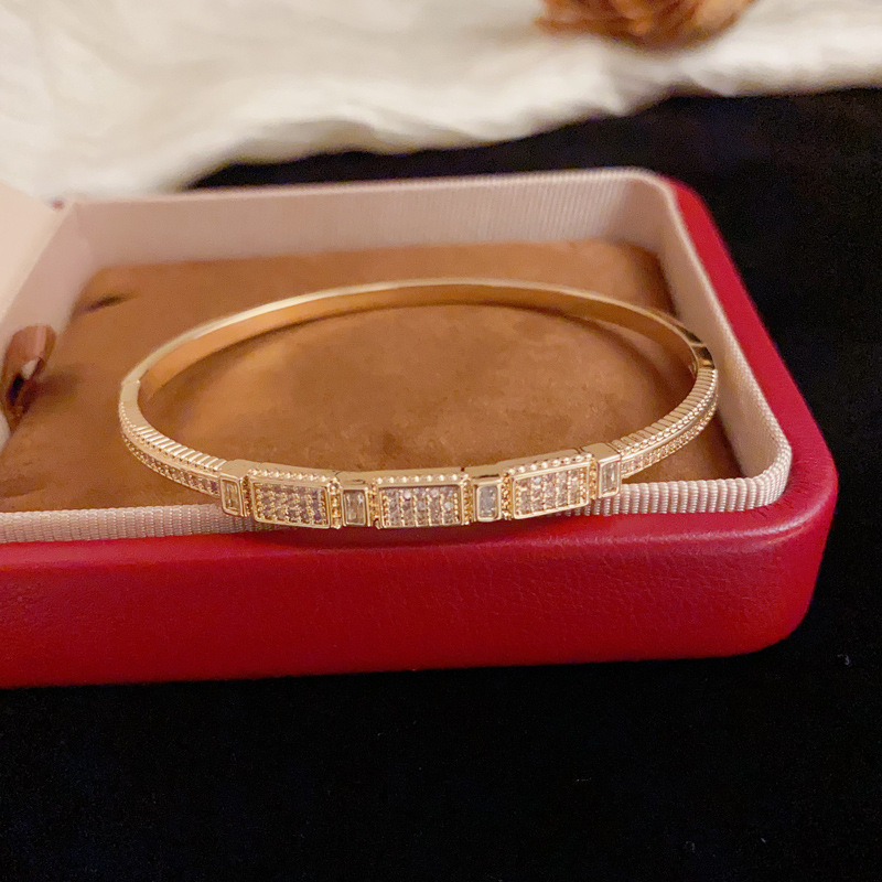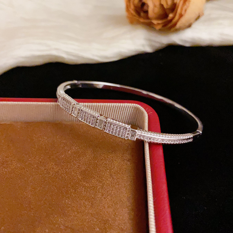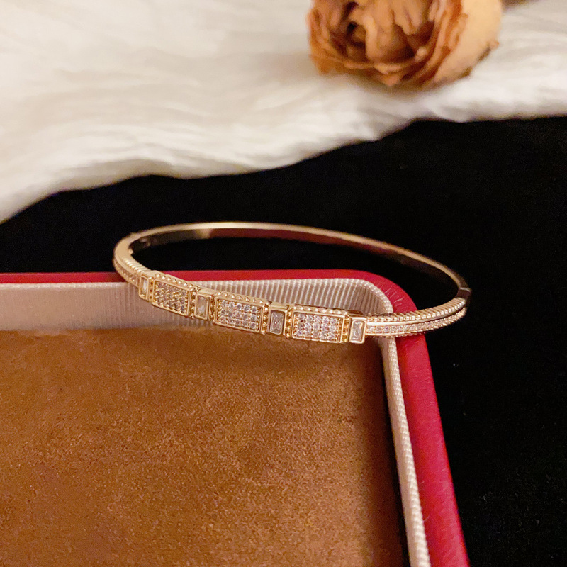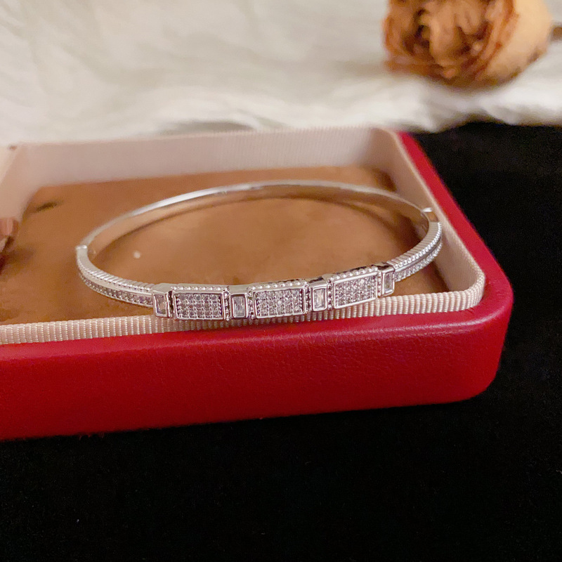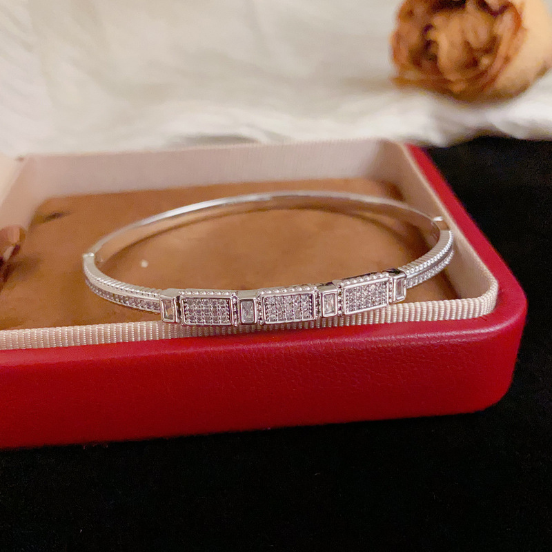 クロスボーダーパーソナライズされたファッションダイヤモンドがちりばめられた幾何学的なブレスレット、フェミニン、シンプル、軽い高級感、多用途、超光沢のあるデザインのブレスレット卸売