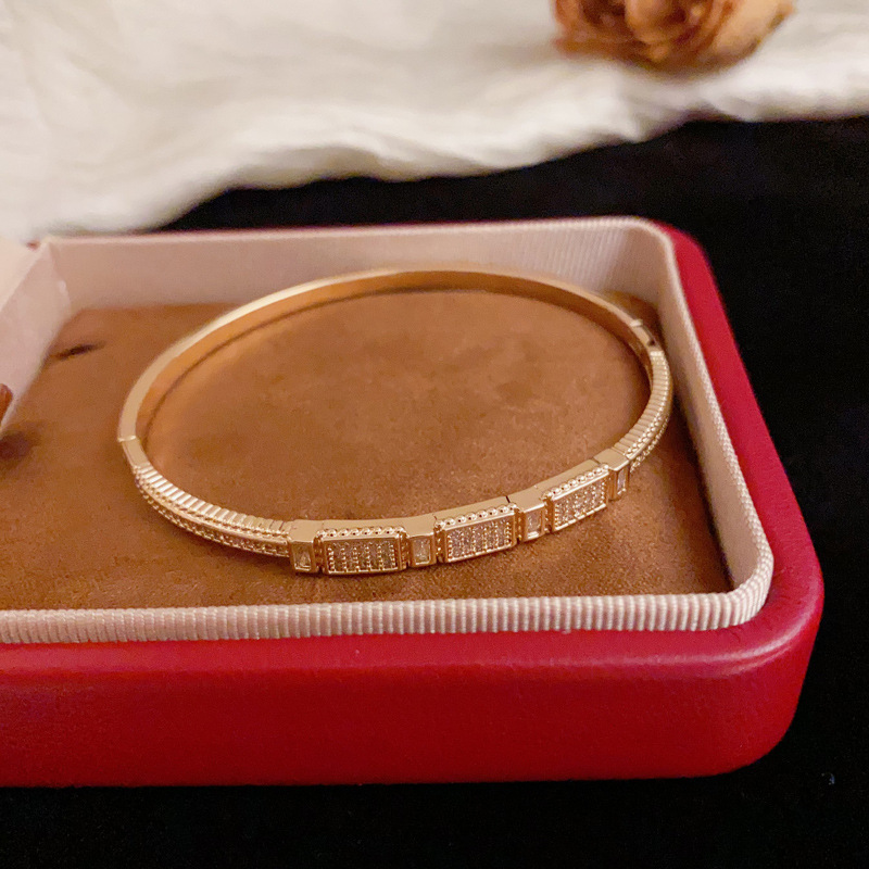 ヨーロッパとアメリカのクロスボーダー気質シンプルなダイヤモンドがちりばめられた女性用ラウンドブレスレット、ファッショナブルで軽い高級感、多用途のデザインブレスレット卸売