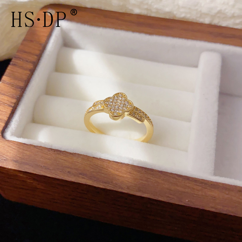 小众轻奢时尚满钻四叶花开口戒精致日常通勤百搭高级感超闪食指戒