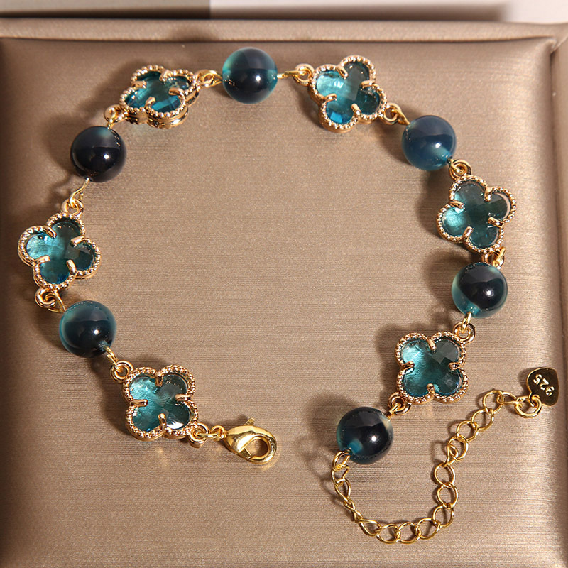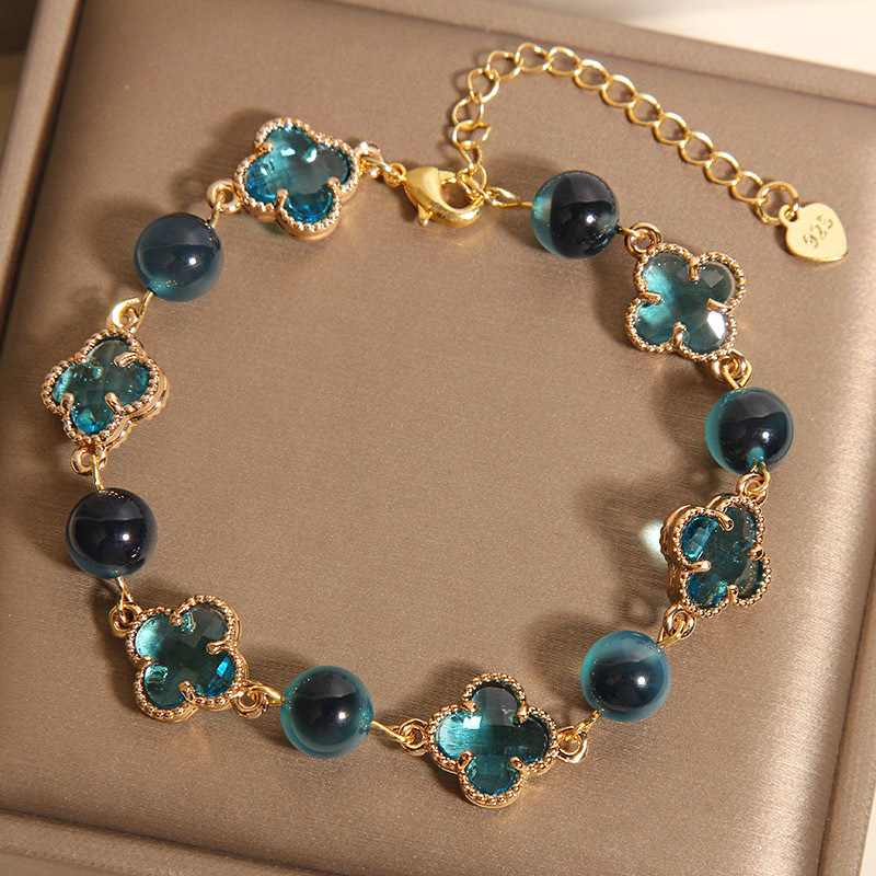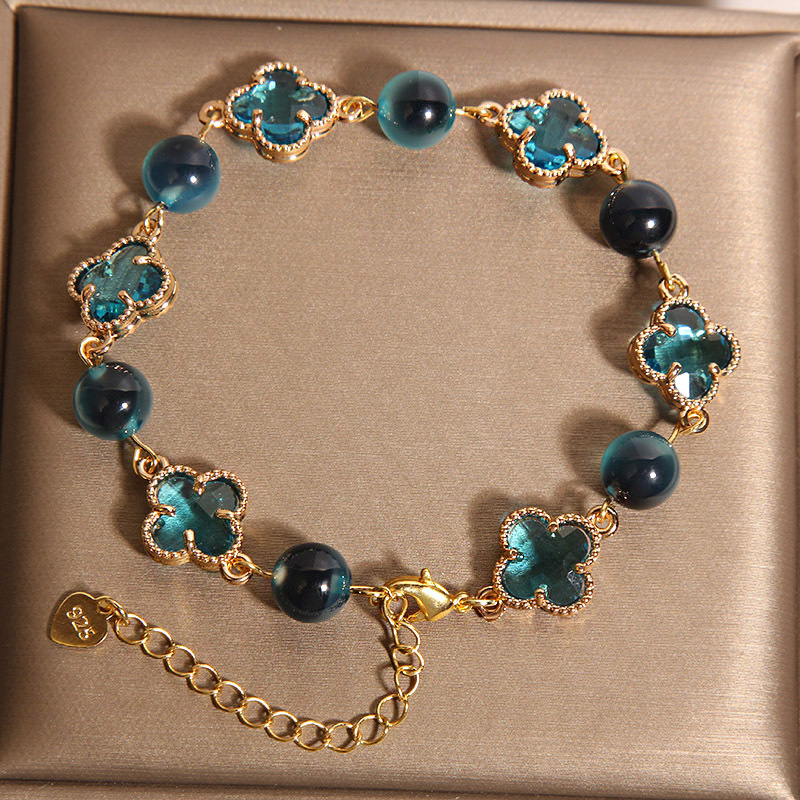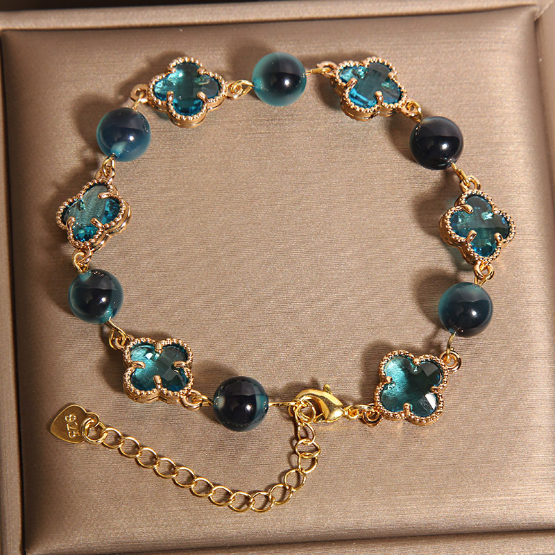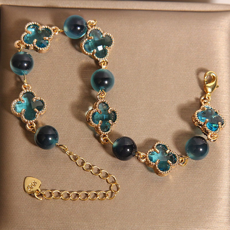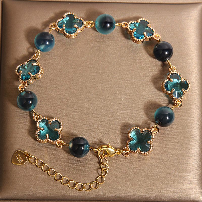 新しい中国風のブルーシュガーハート瑪瑙ブレスレット女性用、軽くて豪華なニッチで絶妙な幸運の四つ葉のクローバーブレスレット、親友へのギフトとして