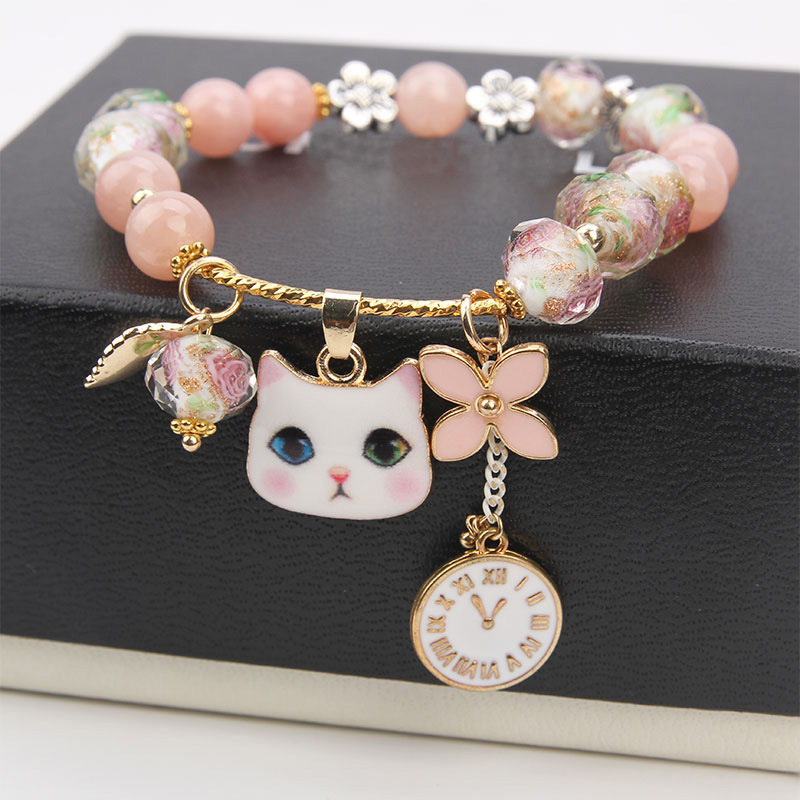韓国の東大門の甘い猫の花の時計の四つ葉の草の数珠の学生の娘の蜜のブレスレットの手のアクセサリーの女性