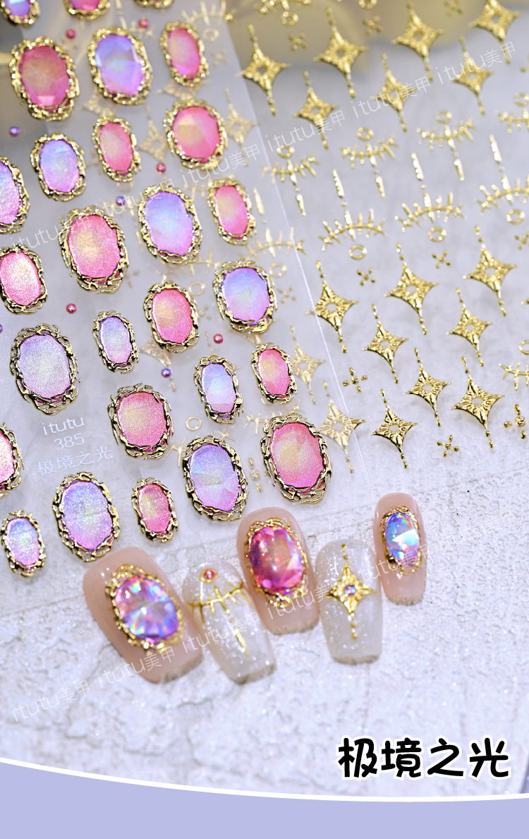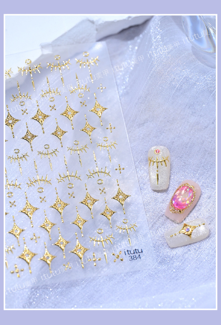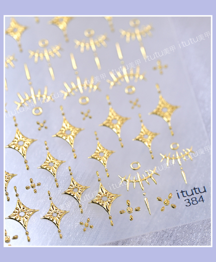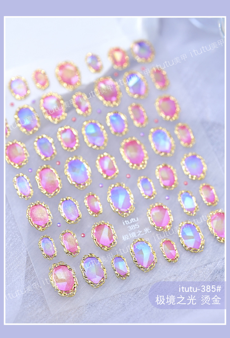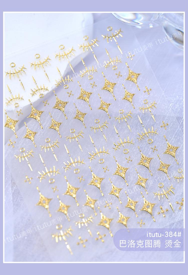 itutu 新バロックトーテム立体ホットスタンピングネイルアートステッカーライトオブザポーラーライトジェムストーンフォトフレーム粘着ステッカー 384