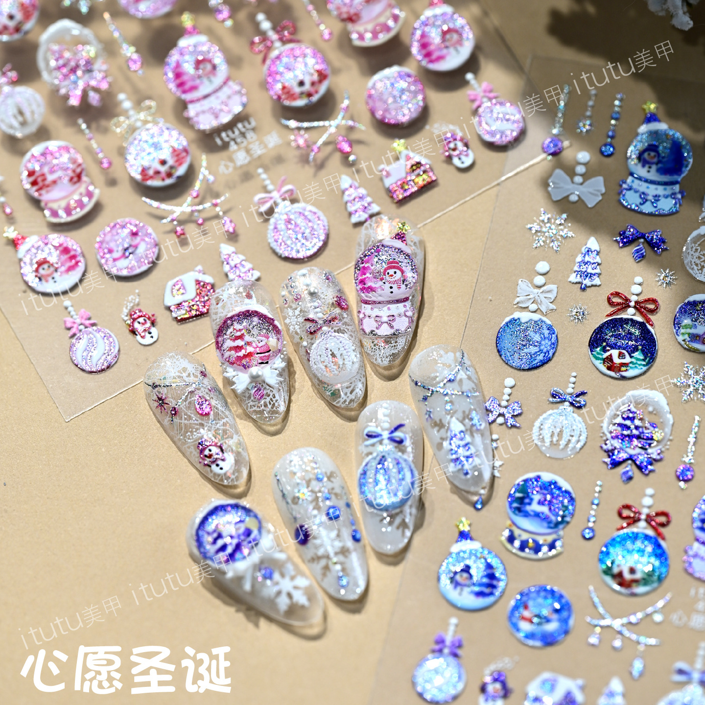 itutu新款心愿圣诞浮雕炫彩美甲贴纸水晶球圣诞树雪花指尖图案457