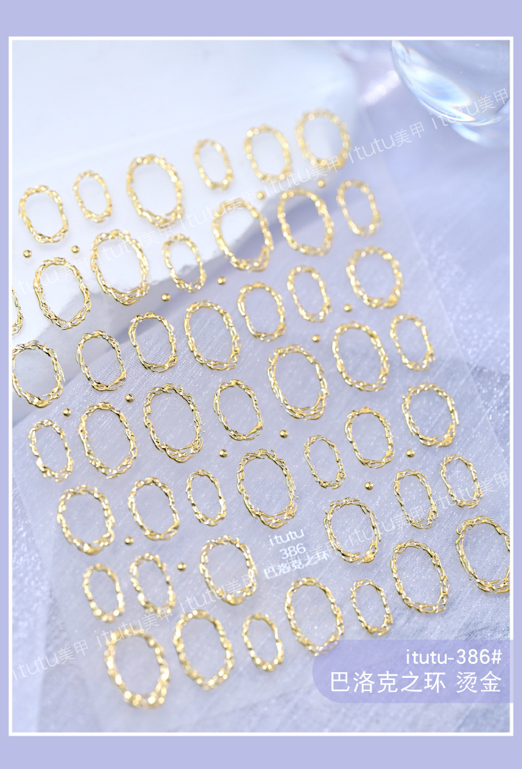 itutu バロックゴールデンセプターブロンズ立体ネイルアートステッカーシェルライトレトロ宝石指先パターン 387