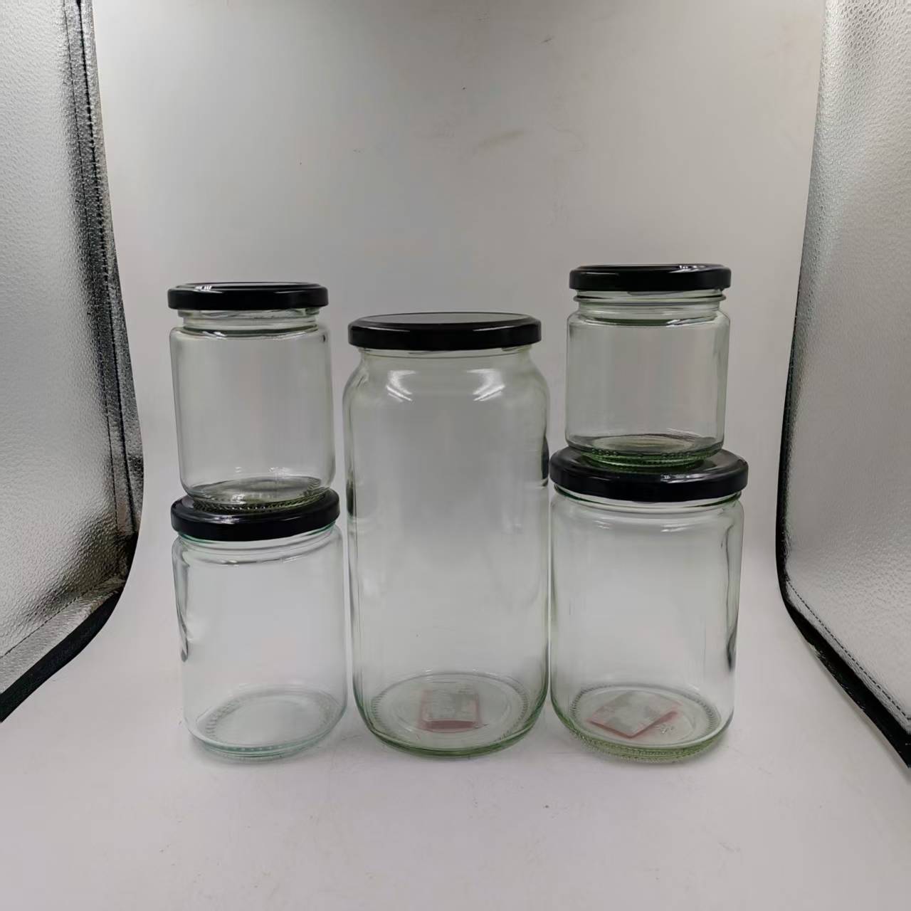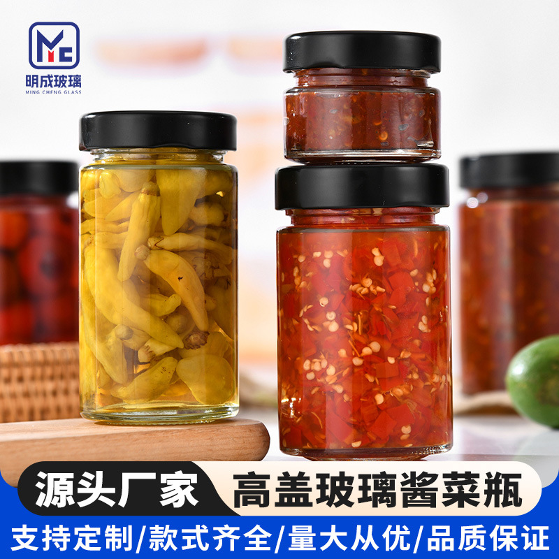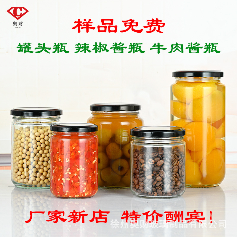 工場直販 チリソースガラス瓶 丸型瓶 缶詰瓶 キノコソース 牛肉ソース瓶 はちみつ瓶 密封保存