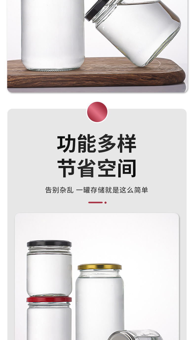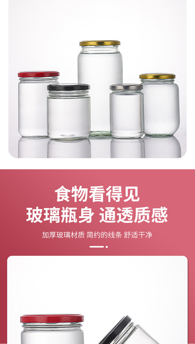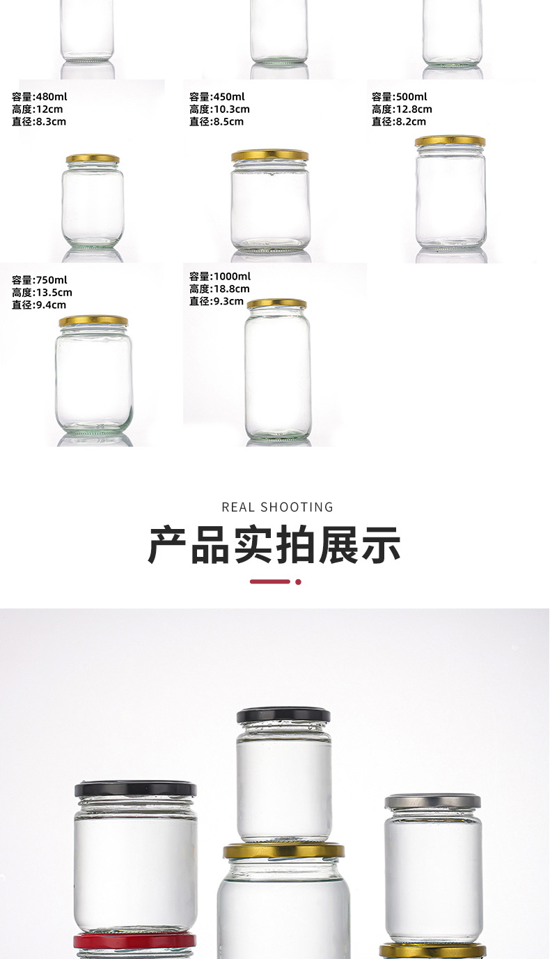 玻璃圆形酱菜瓶蜂蜜瓶黄桃罐头瓶500ml密封辣椒酱腐乳分装瓶批发