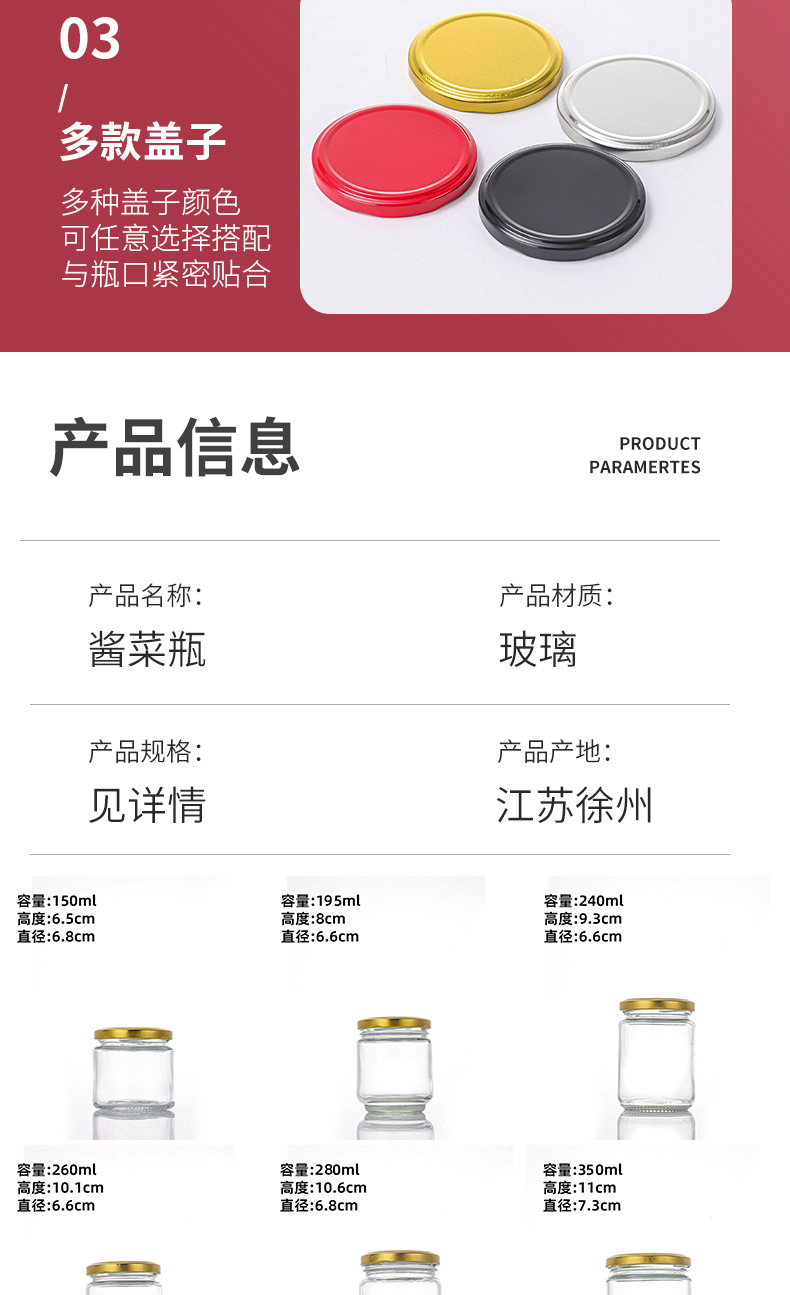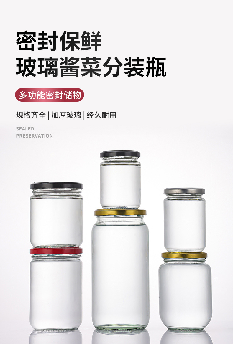 食品级耐高温玻璃酱菜瓶罐头瓶咖啡存储瓶玻璃密封瓶来样来图定制