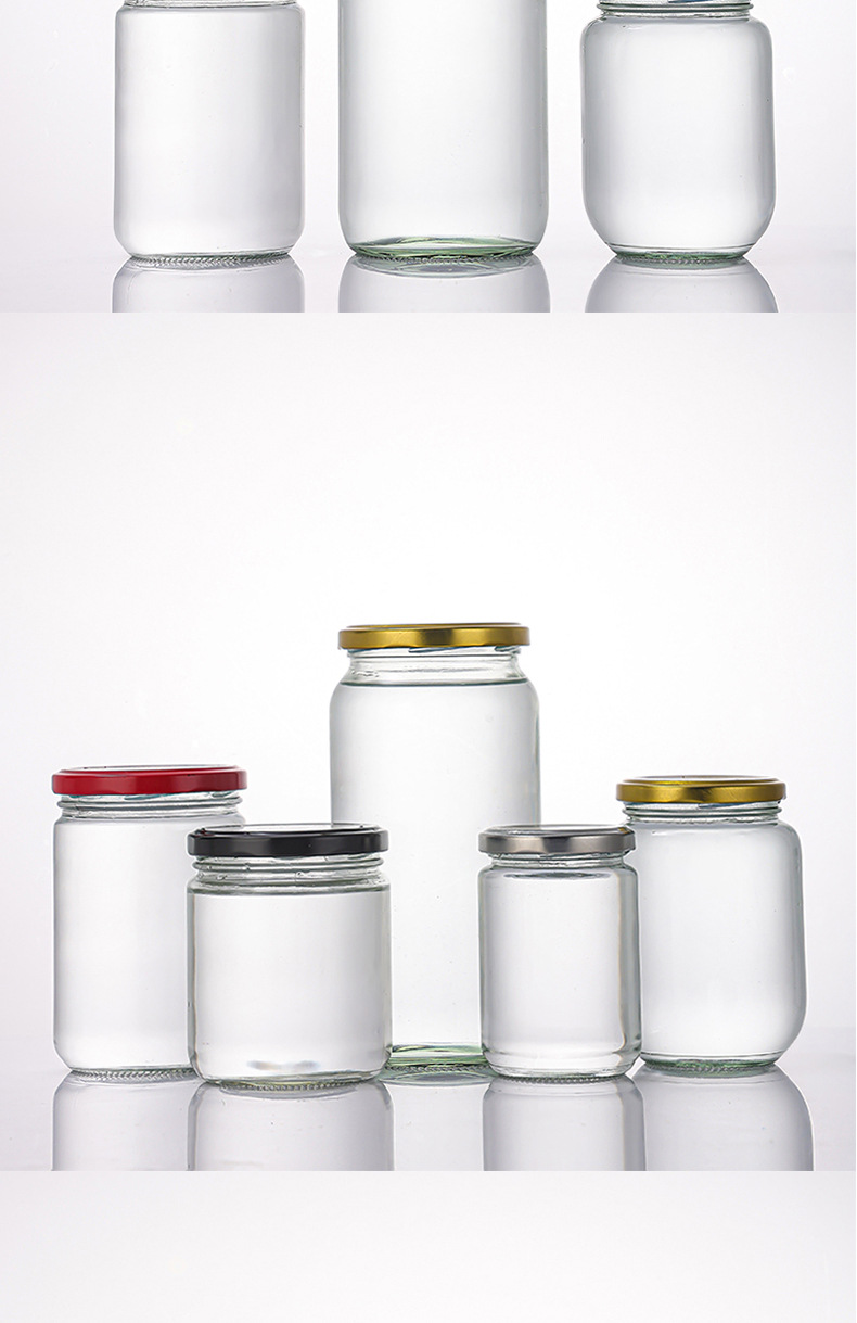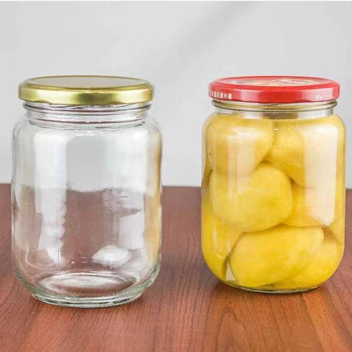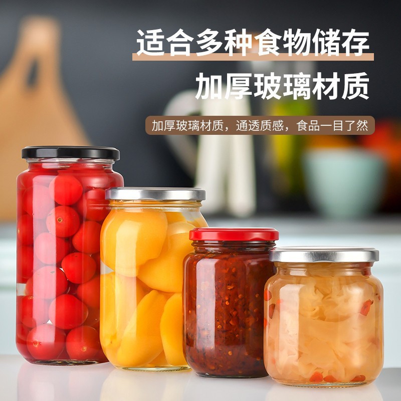 厂家批发黄桃罐头瓶玻璃瓶带盖空瓶密封蜜瓶酱菜圆形瓶储物罐