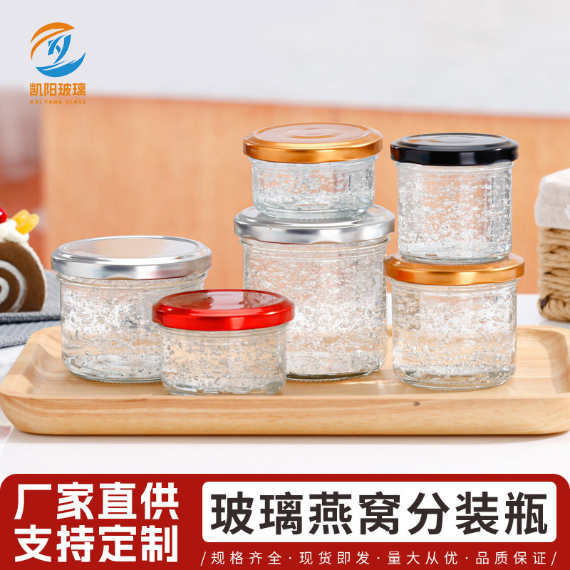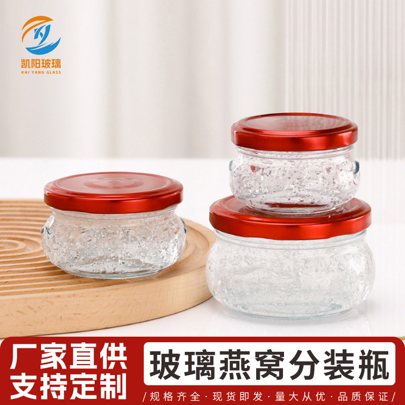すぐに食べられるツバメの巣ボトル、ガラス製キャビアボトル、高温耐性ミルクゼリーウイルスフィッシュゼリーボトル、ハニージャム密封瓶