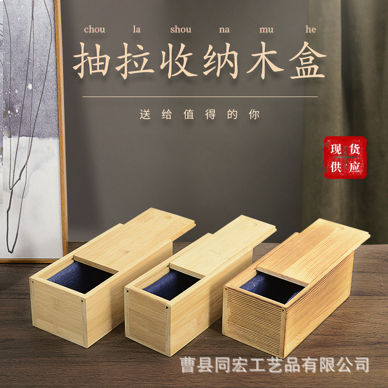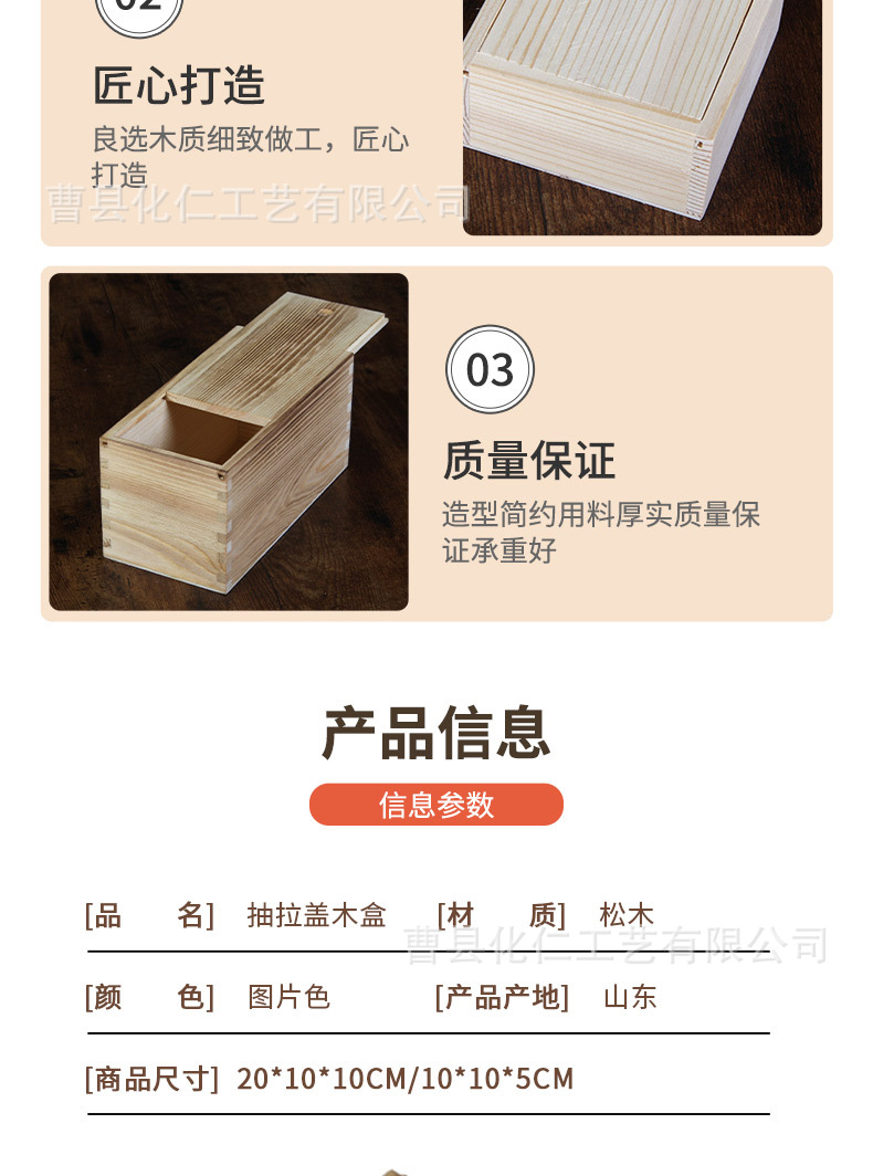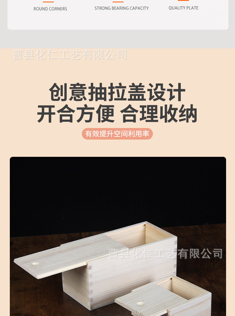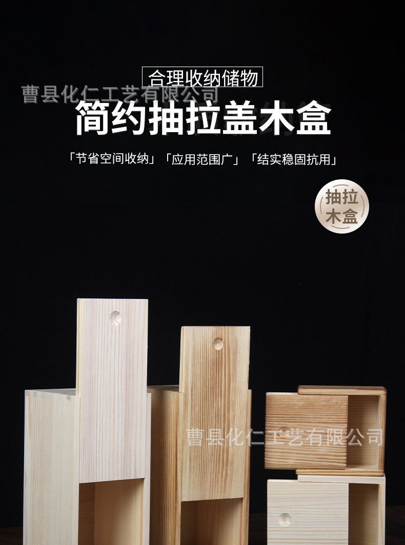 现货松木抽拉盖收纳盒长方形多用途木盒礼品伴手礼首饰包装木盒