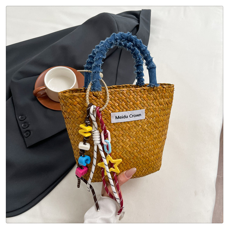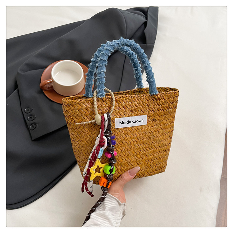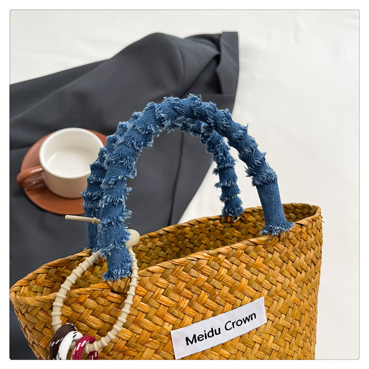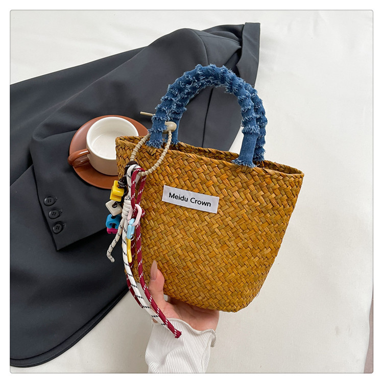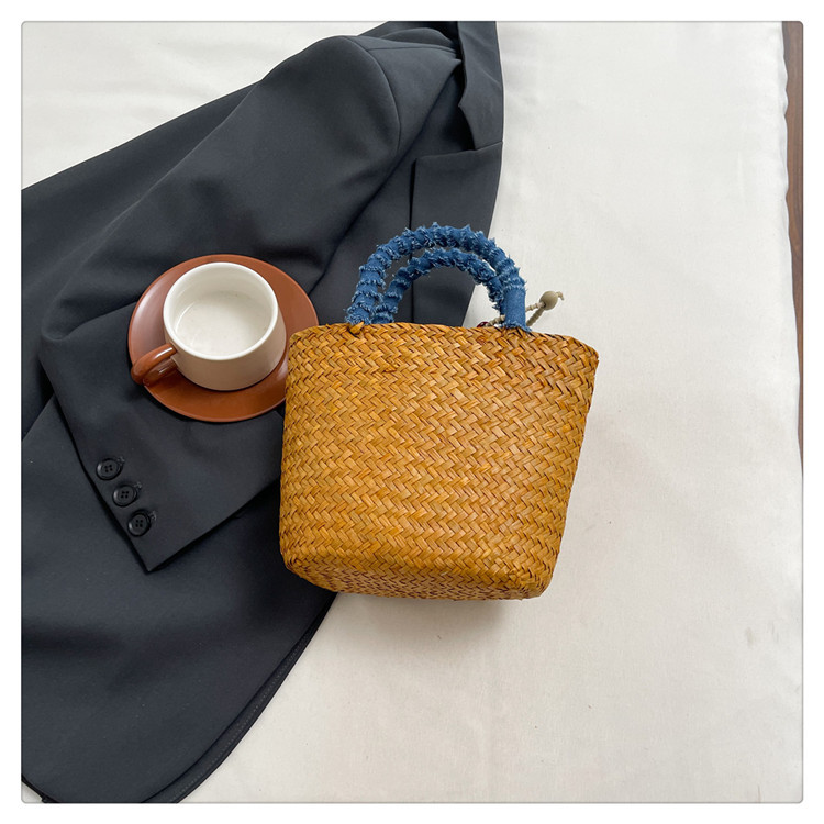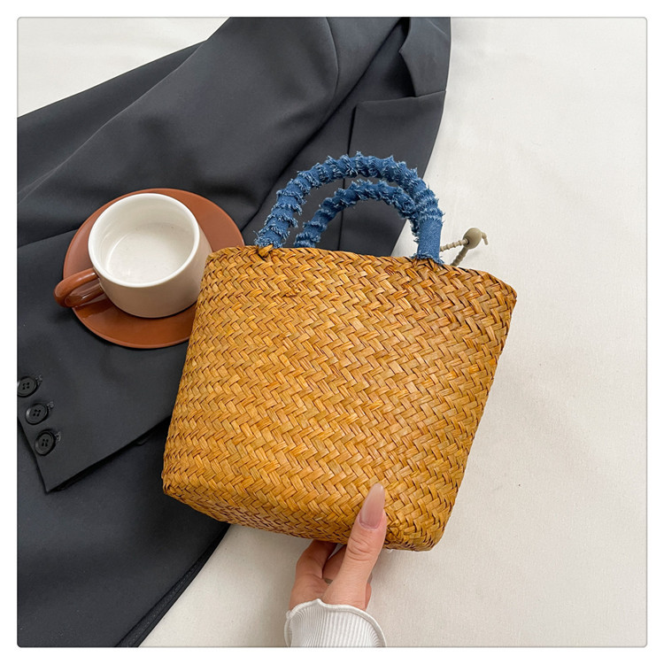 2025 春の新ファッションハンドヘルド織バッグ女性のファッション牧歌的なスタイル野菜バスケットバッグ休暇スタイルわらバッグ