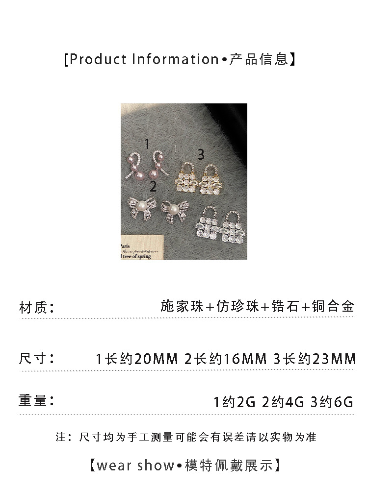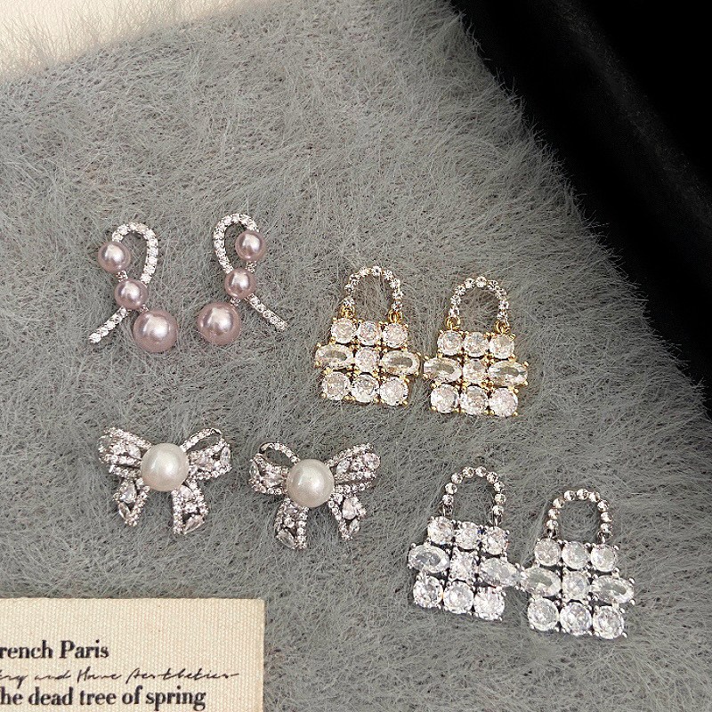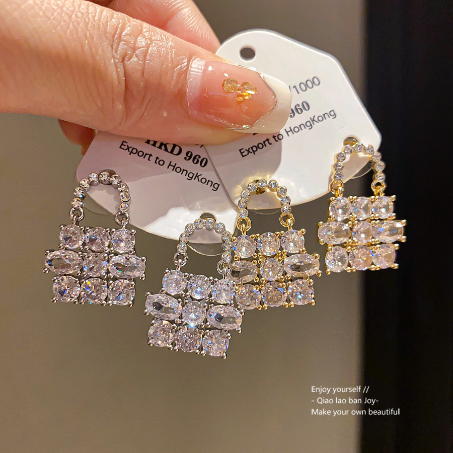 银针超闪锆石包包吊坠耳环轻奢高级感耳钉时尚气质耳饰设计感小众