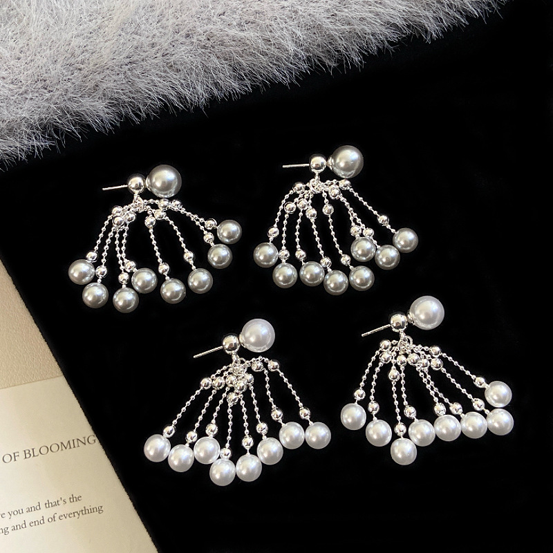 法式超闪烟花施家珍珠流苏耳钉女设计感精致时尚耳环气质小众耳饰