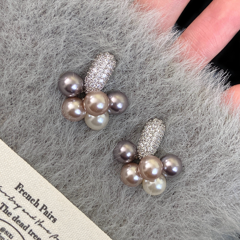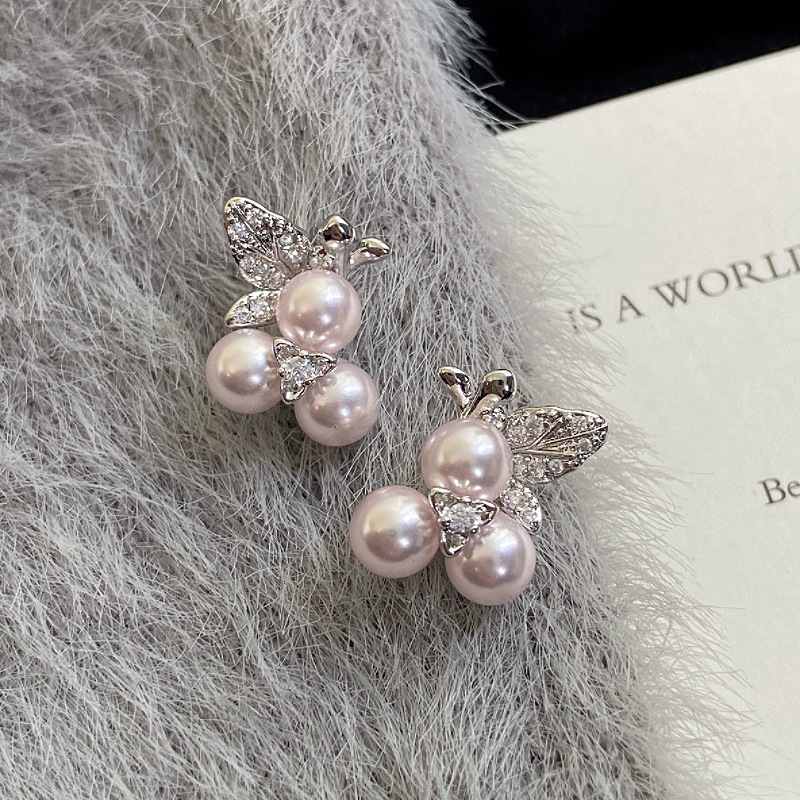 蝴蝶微镶锆石葡萄串曼塔仿珍珠耳钉女甜美精致设计感时尚小巧耳饰