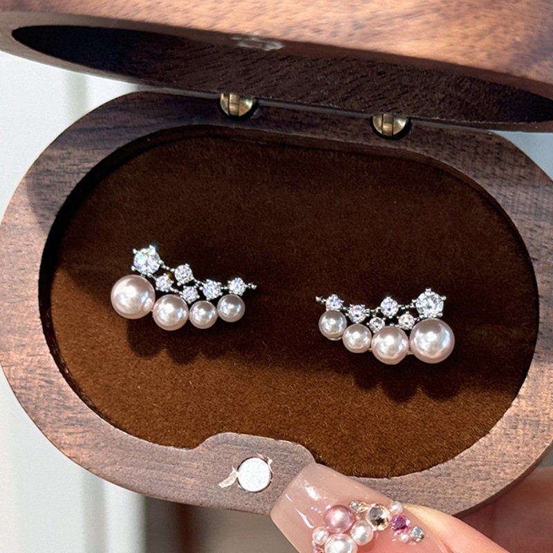微笑一字曼塔珍珠耳钉女轻奢锆石高级感气质耳饰小众百搭精致耳环