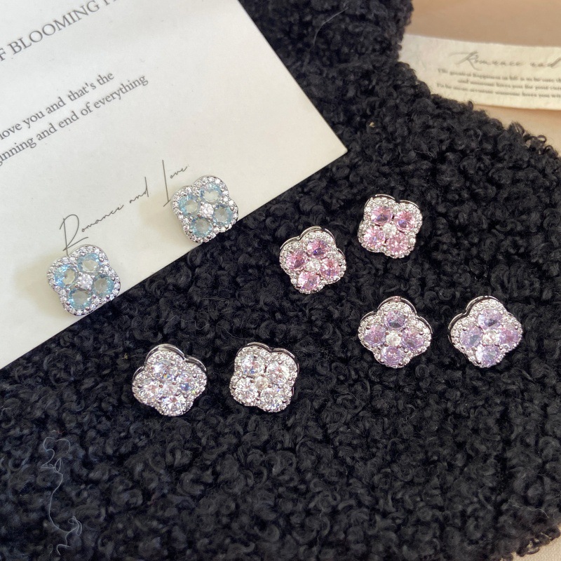 マイクロパヴェジルコニアフルダイヤモンド四つ葉フラワーイヤリング、ライトラグジュアリーミントマンボカラーフラワーフラッシュイヤリング、スモールフレグランスイヤリング