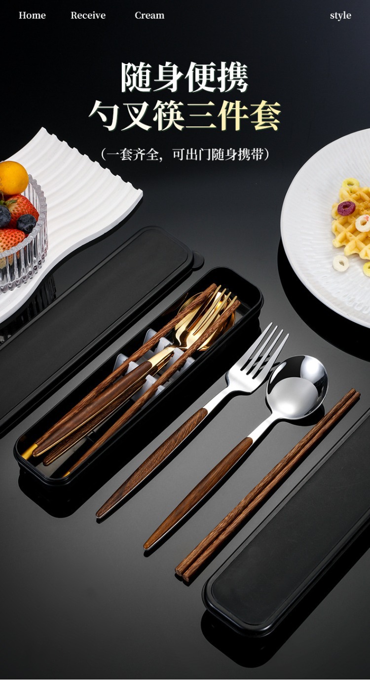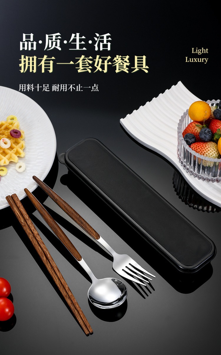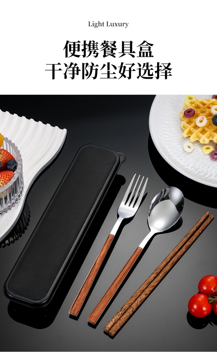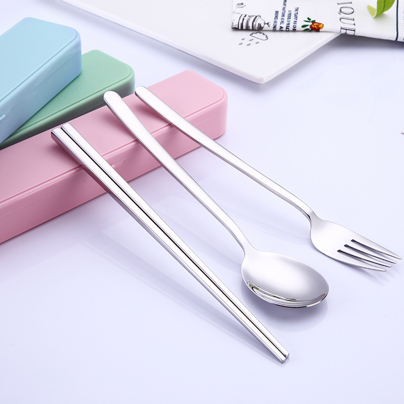 ステンレス鋼ポータブル食器箸スプーンフォークセットボックス学生子供オフィスワーカーシンプルな食器会社ギフト