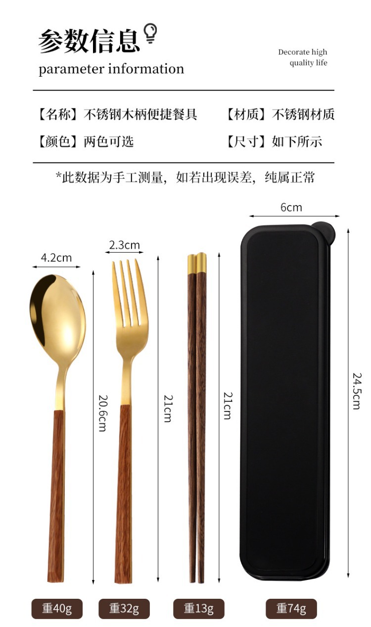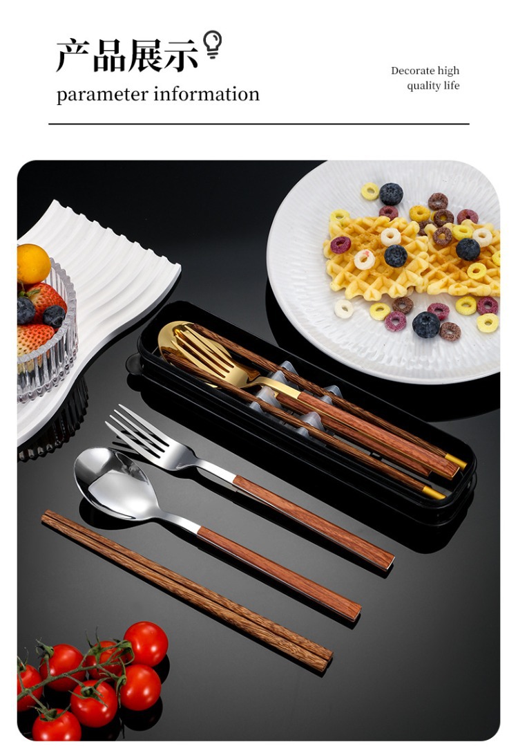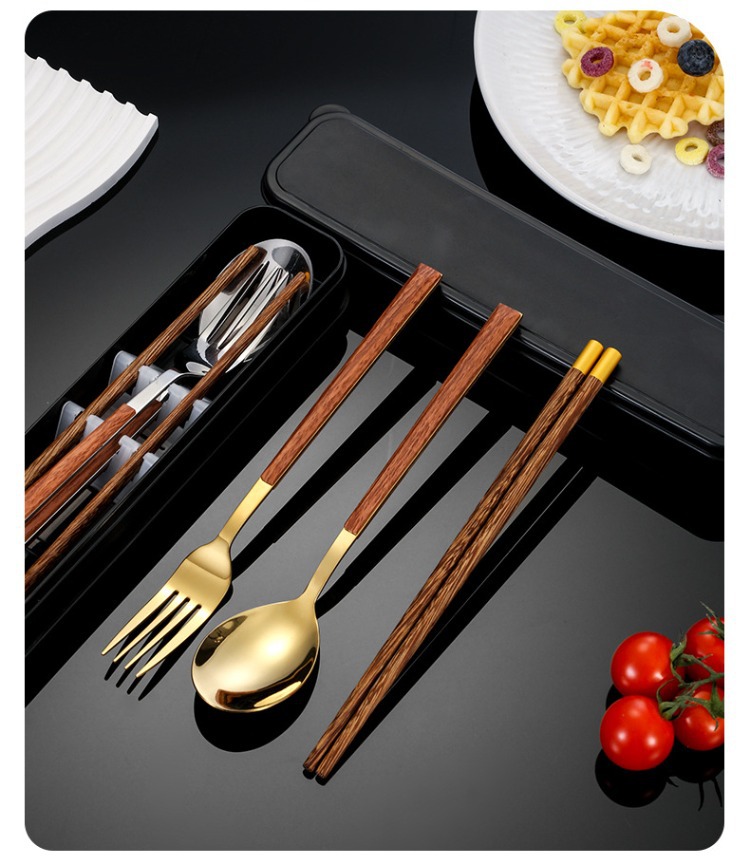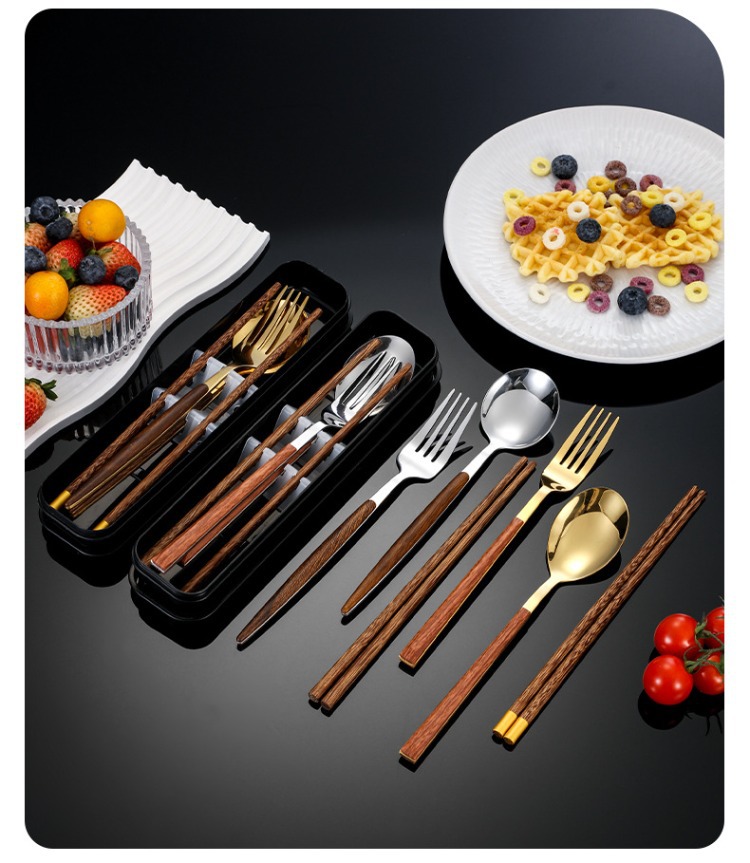 ステンレス鋼ポータブル食器箸スプーンフォークセットボックス学生子供オフィスワーカーシンプルな食器会社ギフト