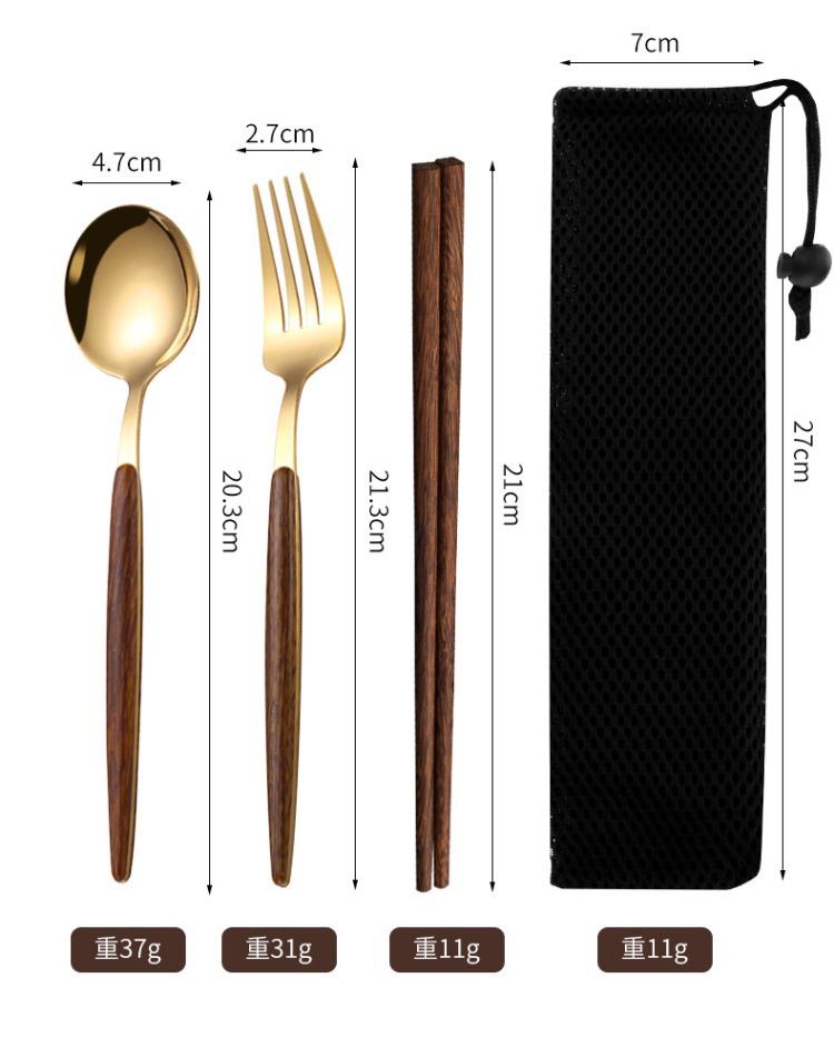 ステンレススプーンフォーク箸三点セット携帯食器袋アウトドア学生食器セット会社プレゼント