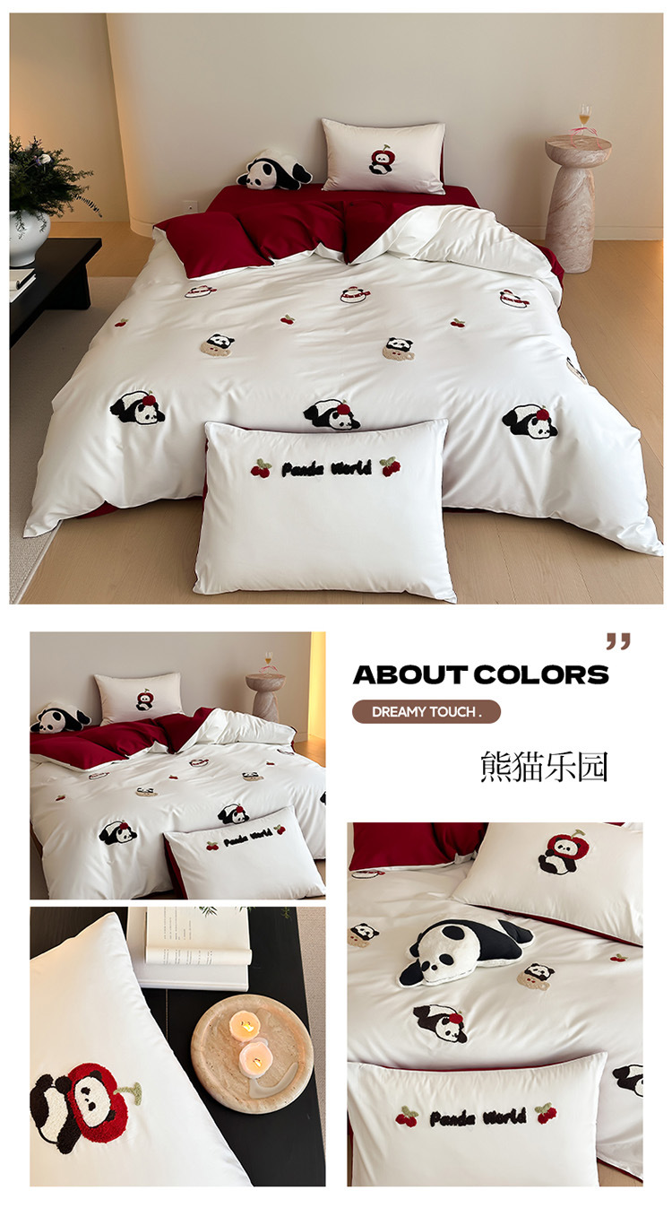 漫画パンダタオル刺繍綿新疆長繊維綿 4 点セットハイエンド子供用 3 点セットベッドシーツキルトカバー純綿
