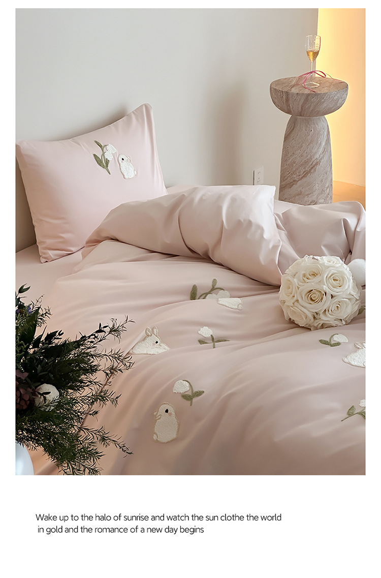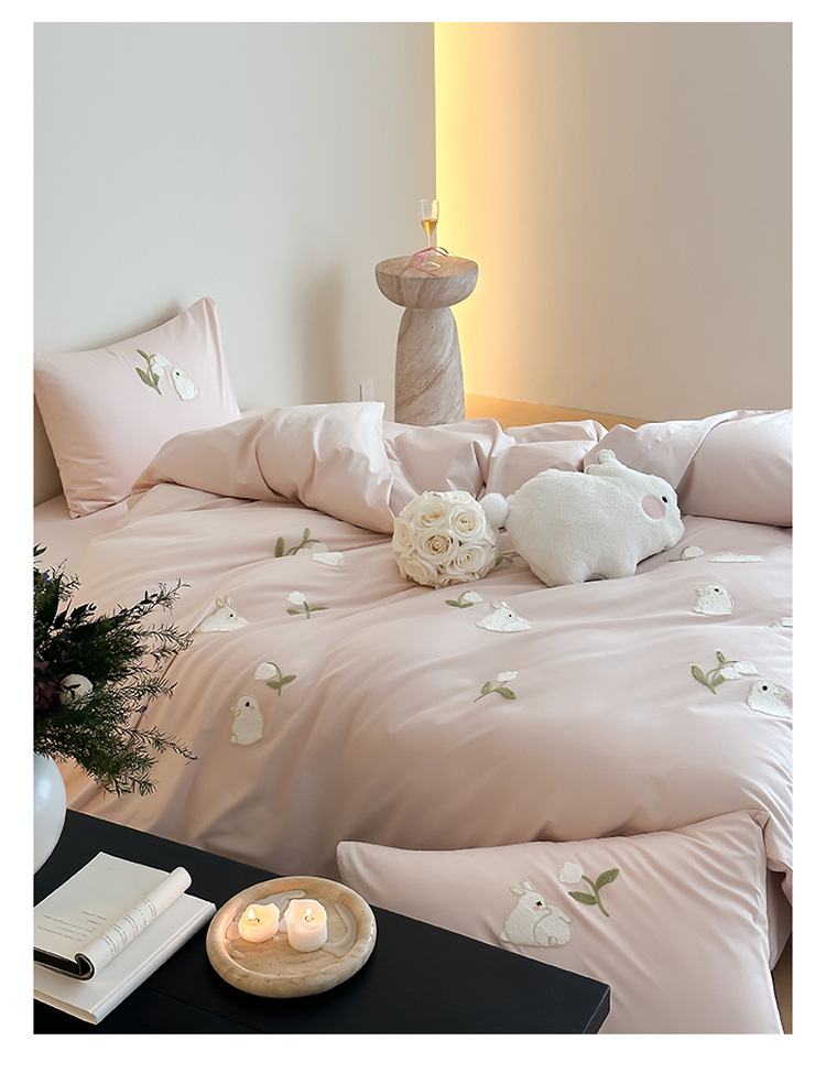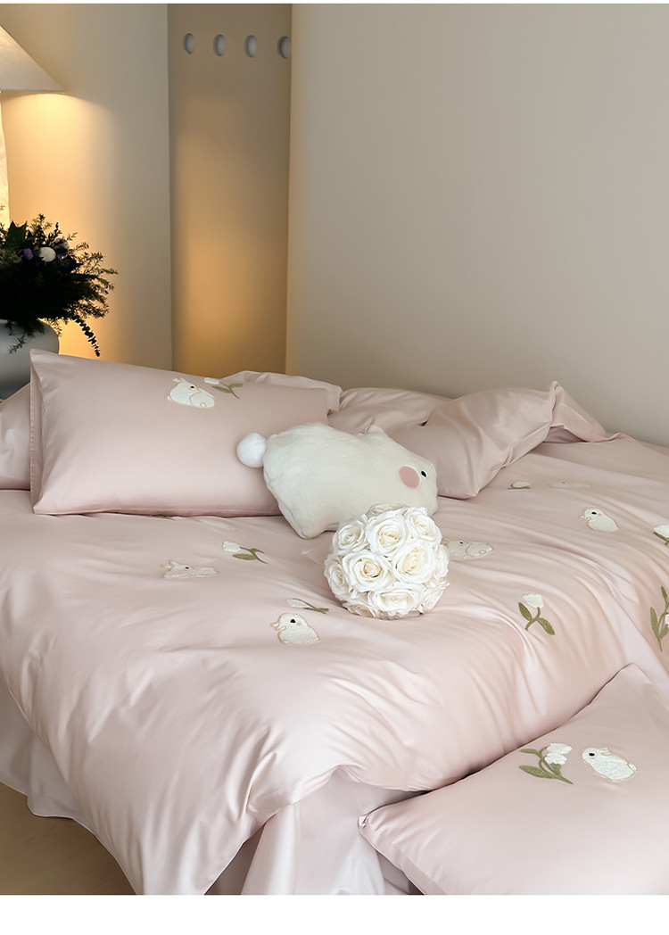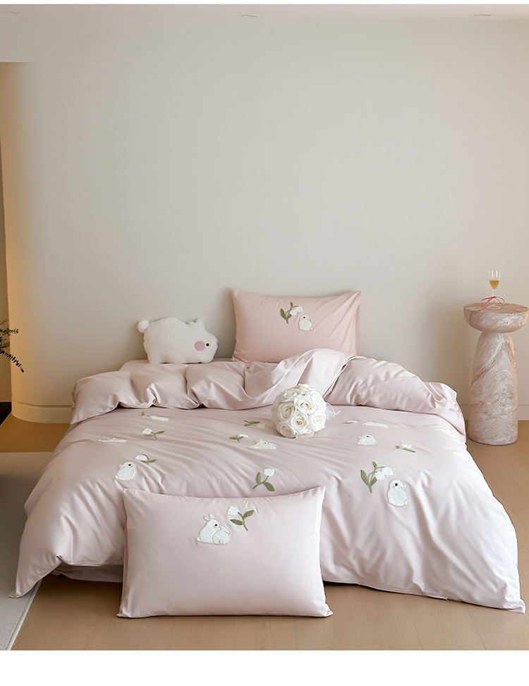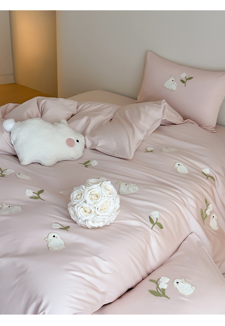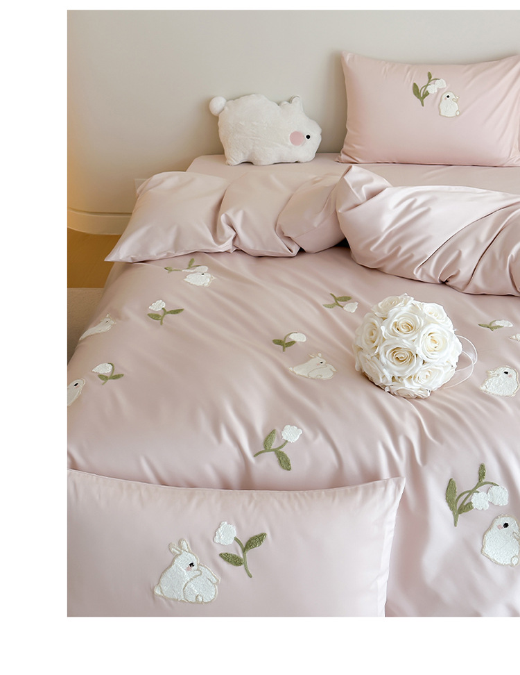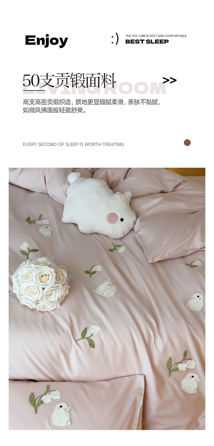 少女心全棉长绒棉刺绣磨毛四件套纯棉加厚床单被套秋冬季床上用品