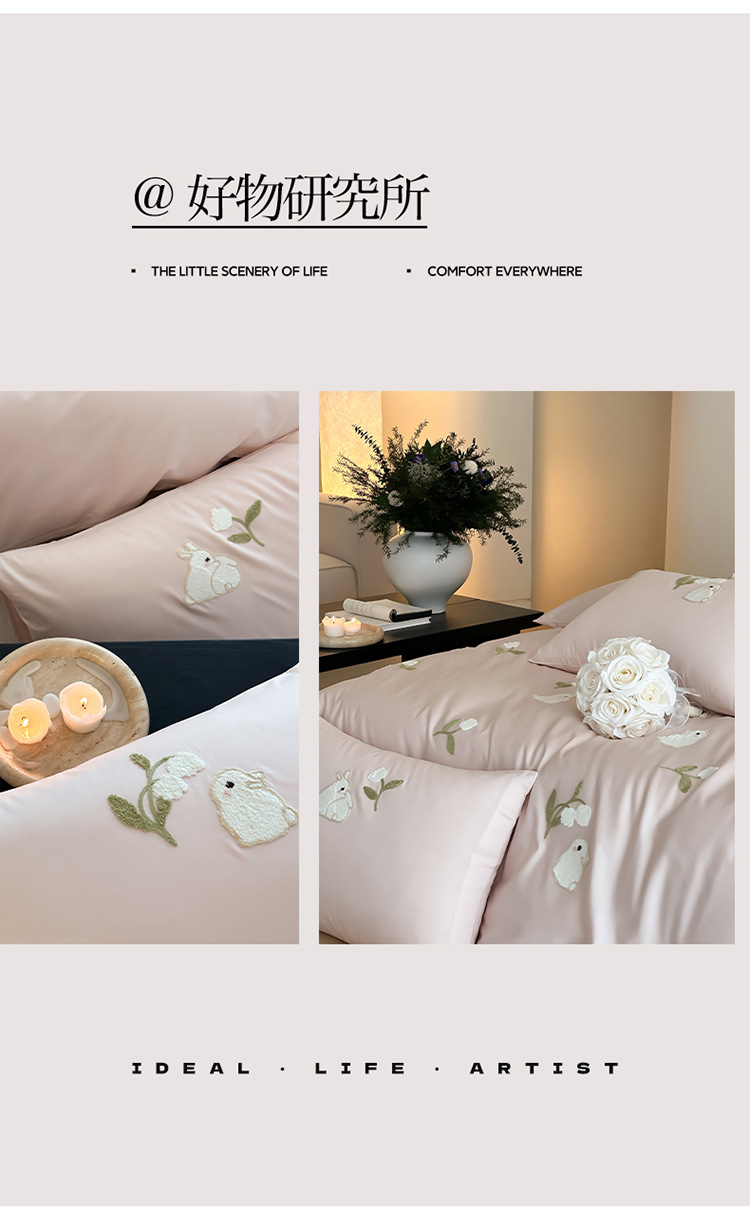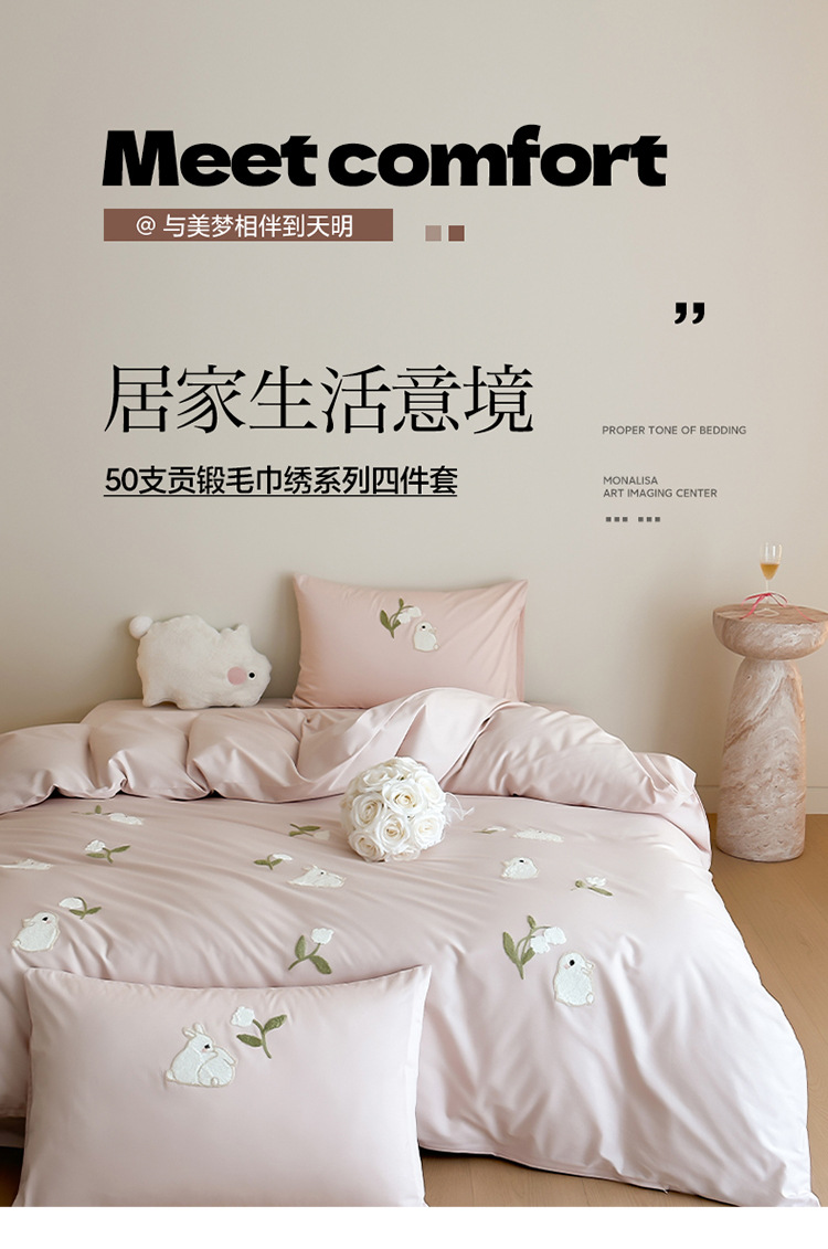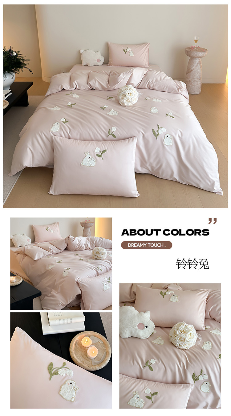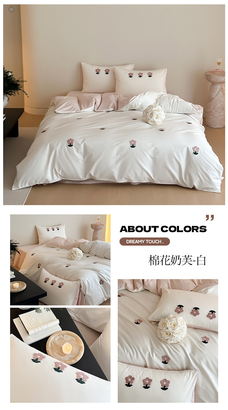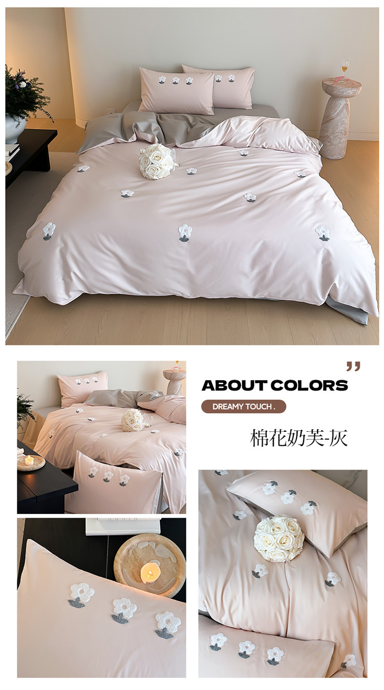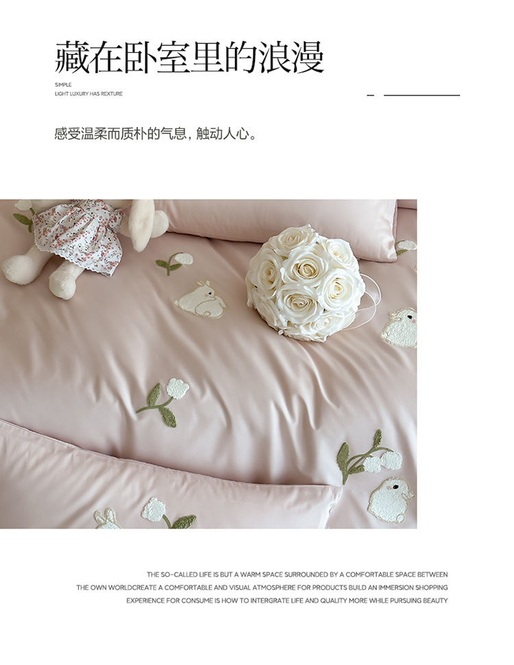 少女心全棉长绒棉刺绣磨毛四件套纯棉加厚床单被套秋冬季床上用品