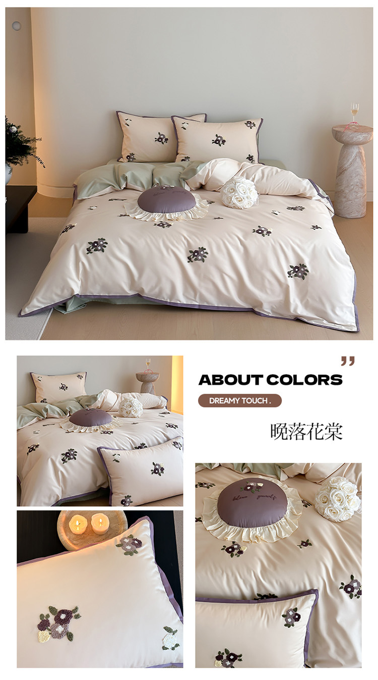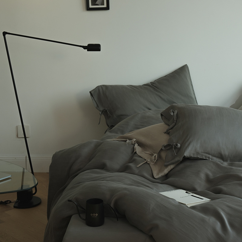 紫黒北欧風は非常にシンプルで、純綿の洗濯綿のベッドの上に四つのセットの純綿の純色のシーツをカバーしています。