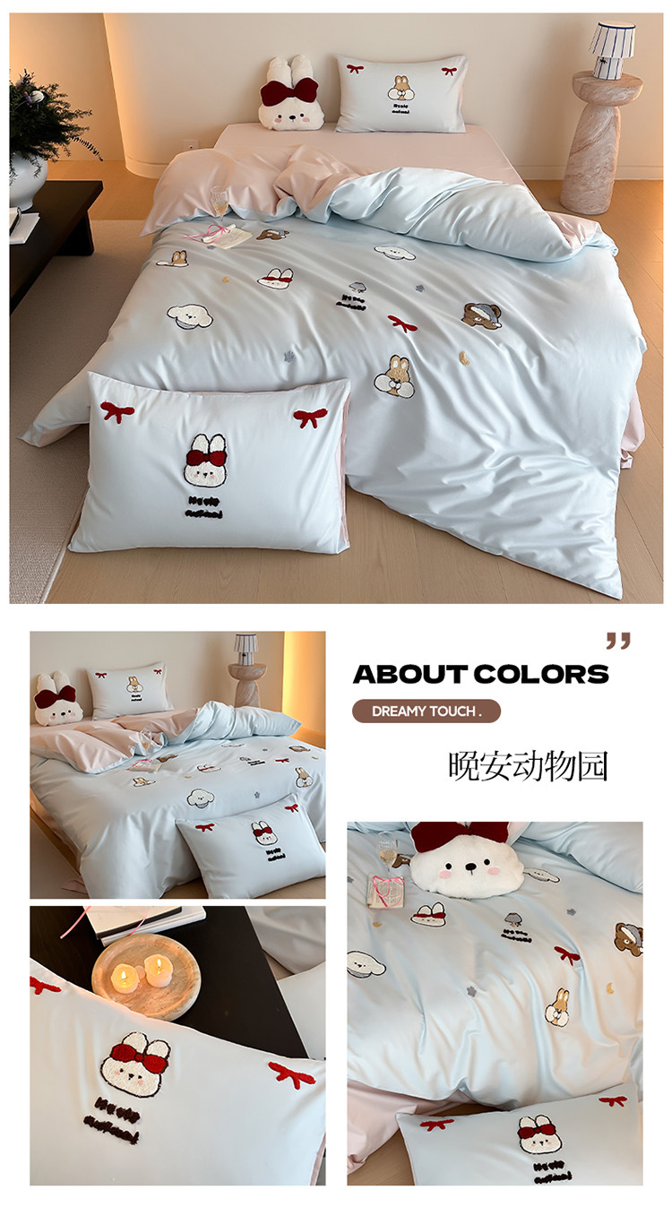 卡通全棉床上四件套纯棉被套100少女床单可爱床笠学生三件套床品4