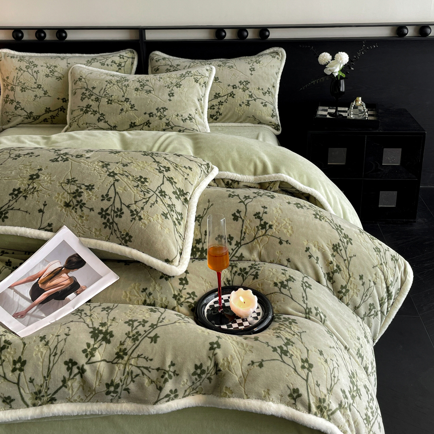 秋冬法式兔毛绒四件套加厚珊瑚牛奶绒床上用品法兰绒被套加绒床单
