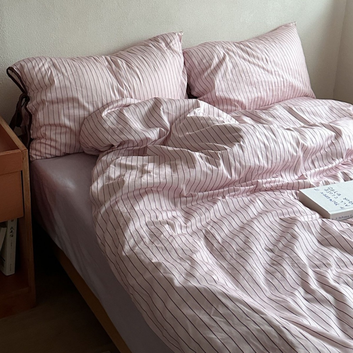 粉色少女心简约ins条纹绑带床上四件套全棉纯棉混搭被套床单床笠
