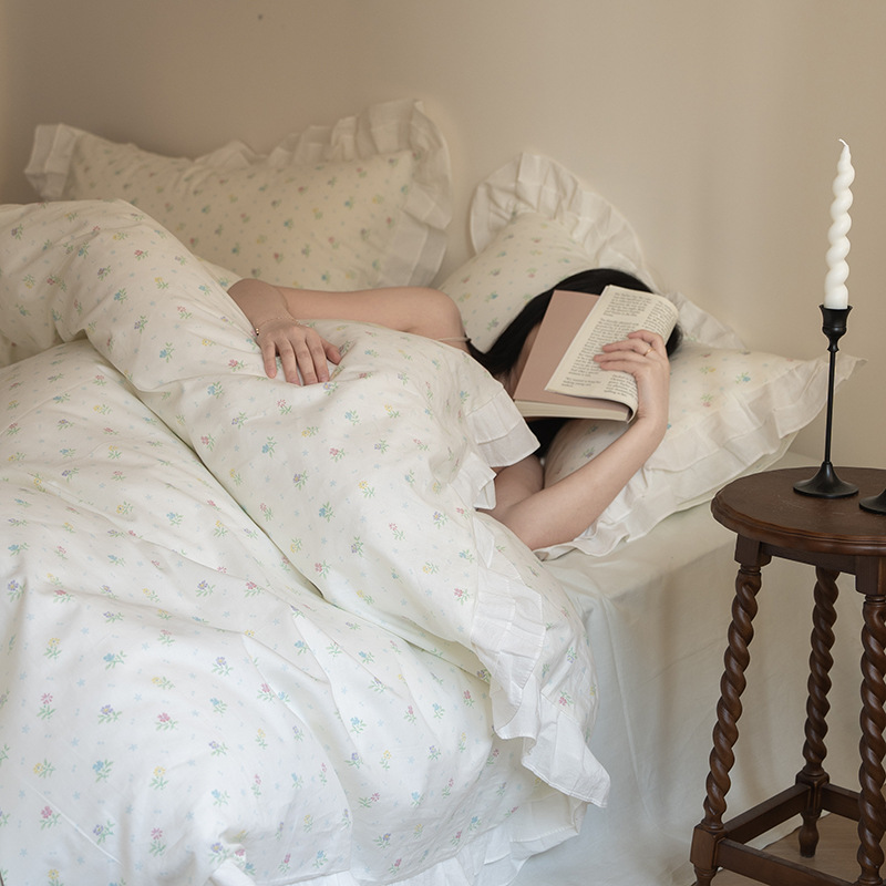散文詩ins復古プリント40本綿4点セット純綿布団シーツと韓国式ベッド用品を混ぜた