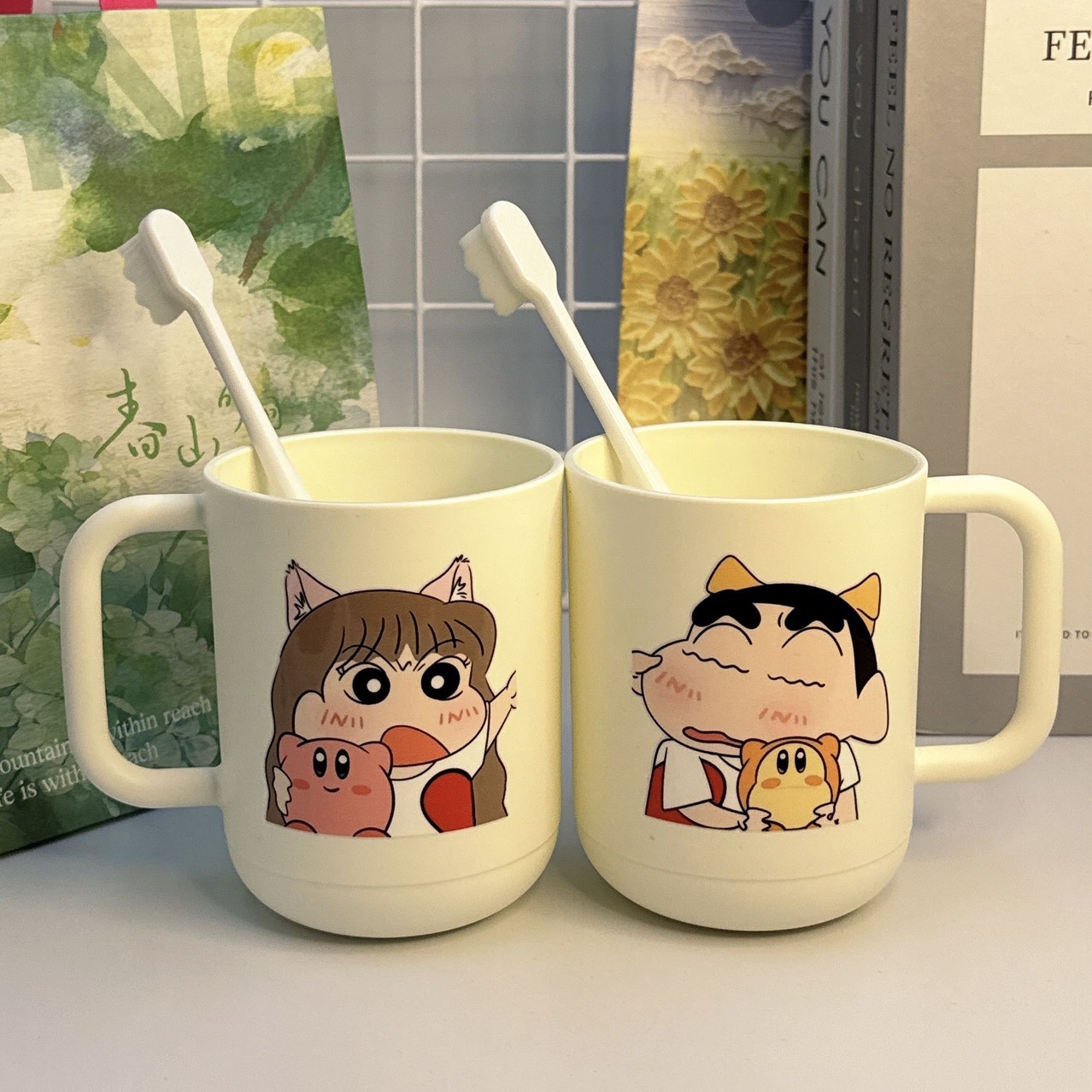 漫画クレヨンしんちゃんカップルマウスウォッシュカップかわいい歯磨き洗浄プラスチックカップホーム寮学生子供の歯のカップ
