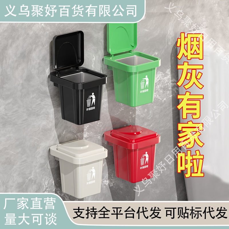 新款垃圾桶创意烟灰缸家用壁挂个性打孔潮流卫生间壁挂式带盖烟