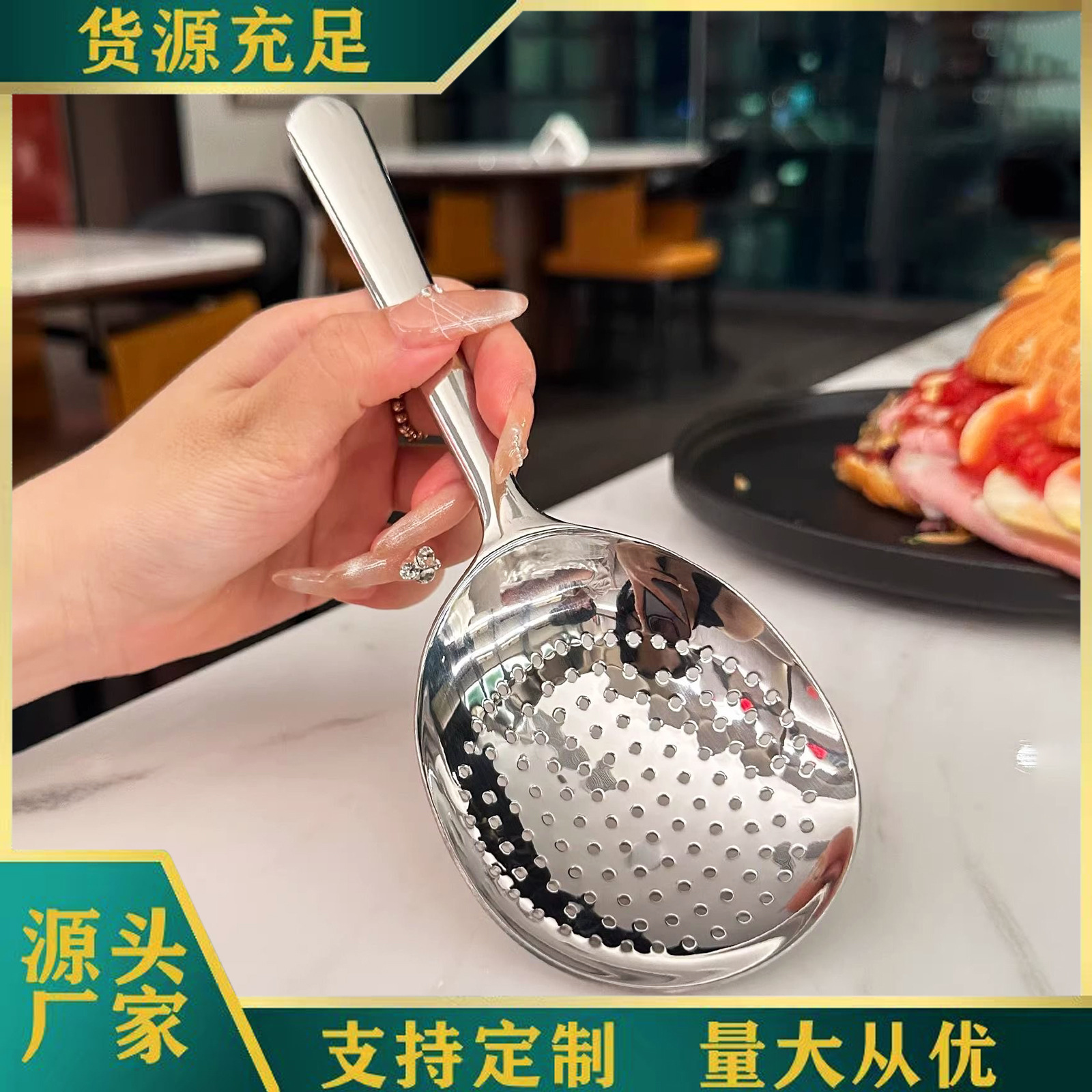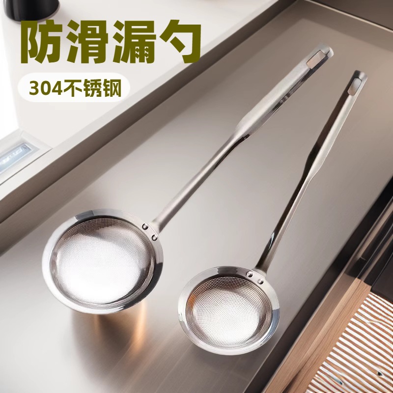 不锈钢大头汤勺面粉勺分餐勺子漏勺捞勺布轮抛光加厚重勺一体成型