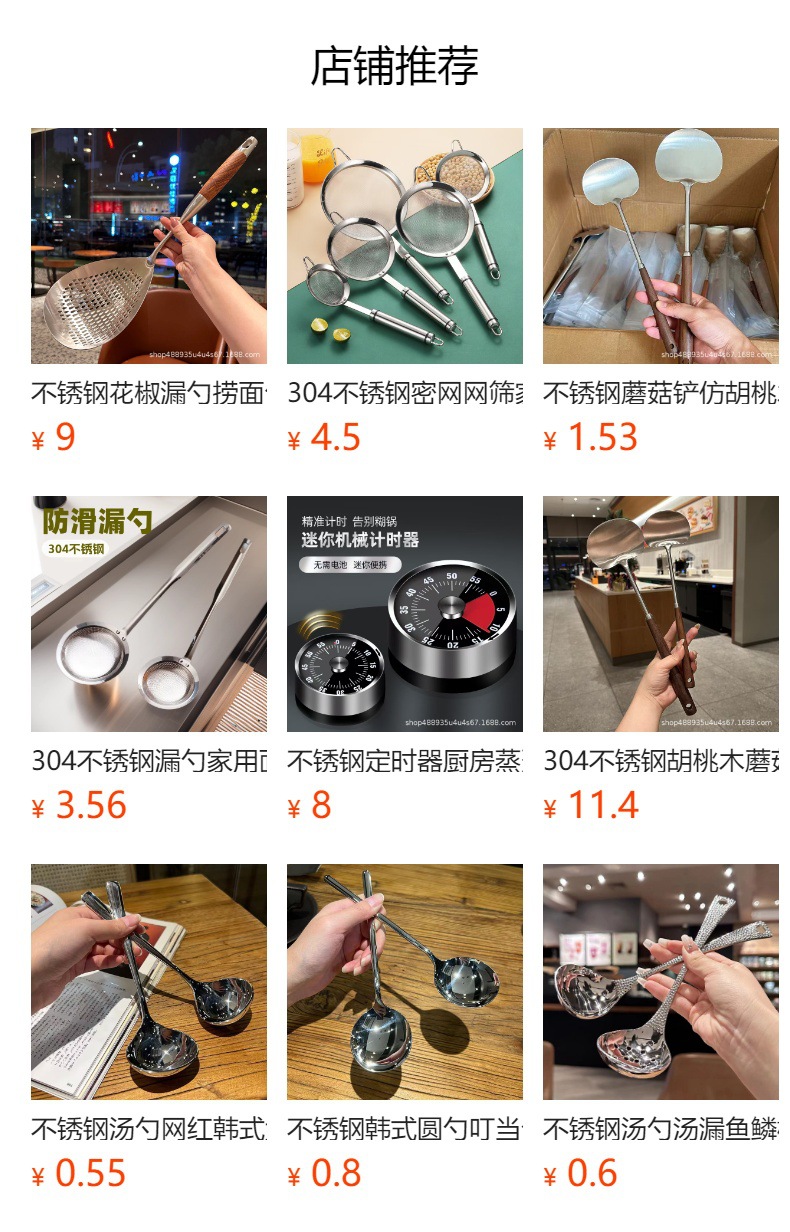 不锈钢勺子网红短柄大圆勺厨房分餐勺家用汤勺漏勺饭勺大头汤漏勺