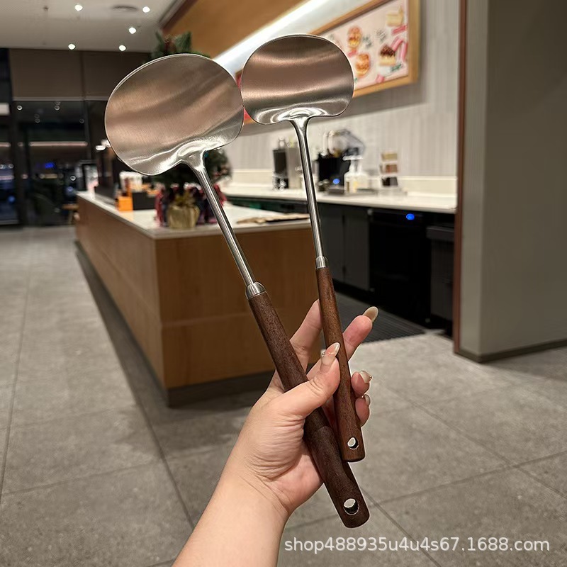 304ステンレス鋼とクルミ材のマッシュルーム型スパチュラ、大小サイズ、ノンスティック鍋用、炒め物用スパチュラ、キッチン用品、滑り止め、耐熱