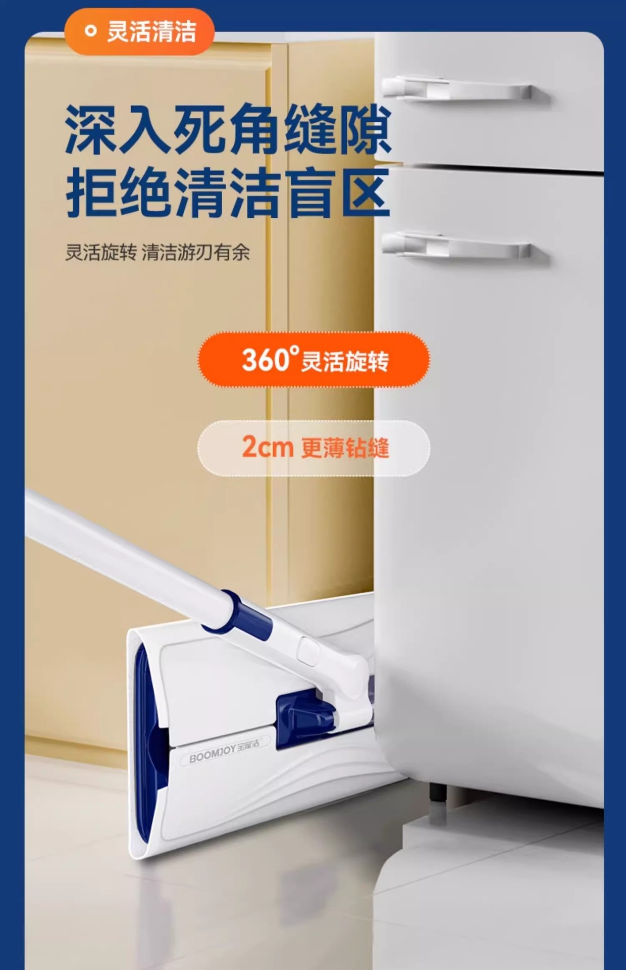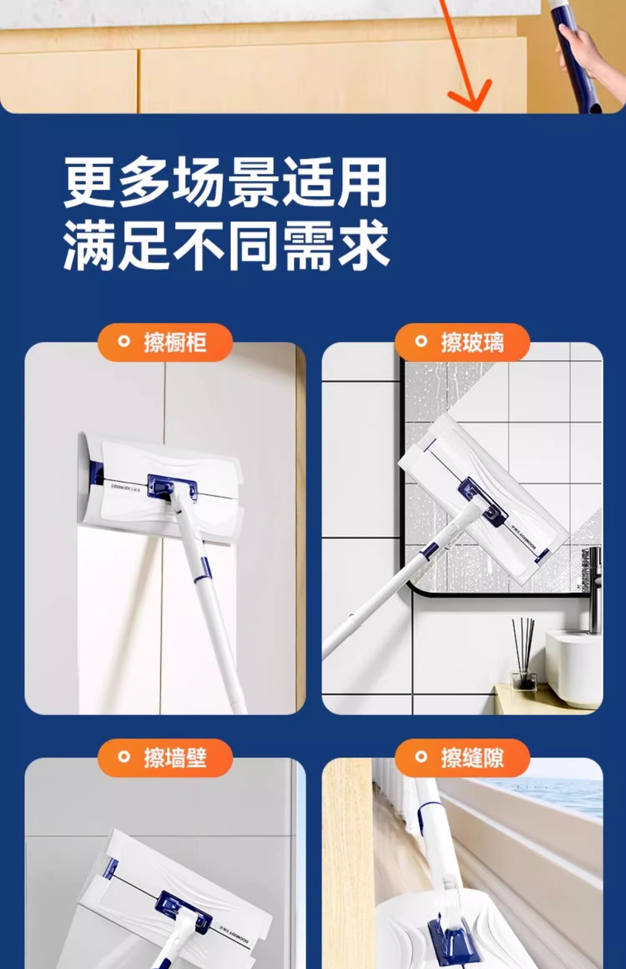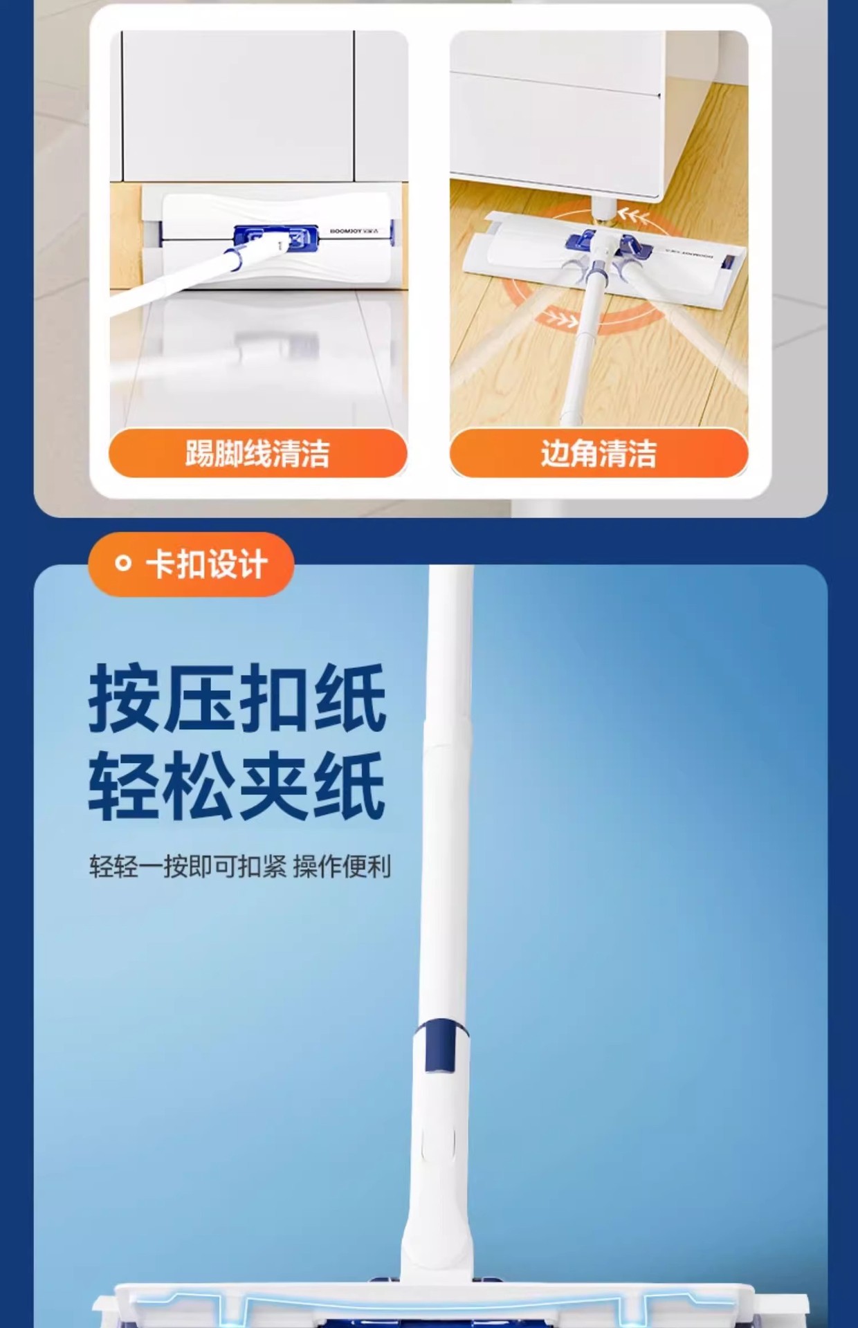 宝家洁自动夹布拖把擦墙柜子天花板清洁神器懒人免手洗家用加长